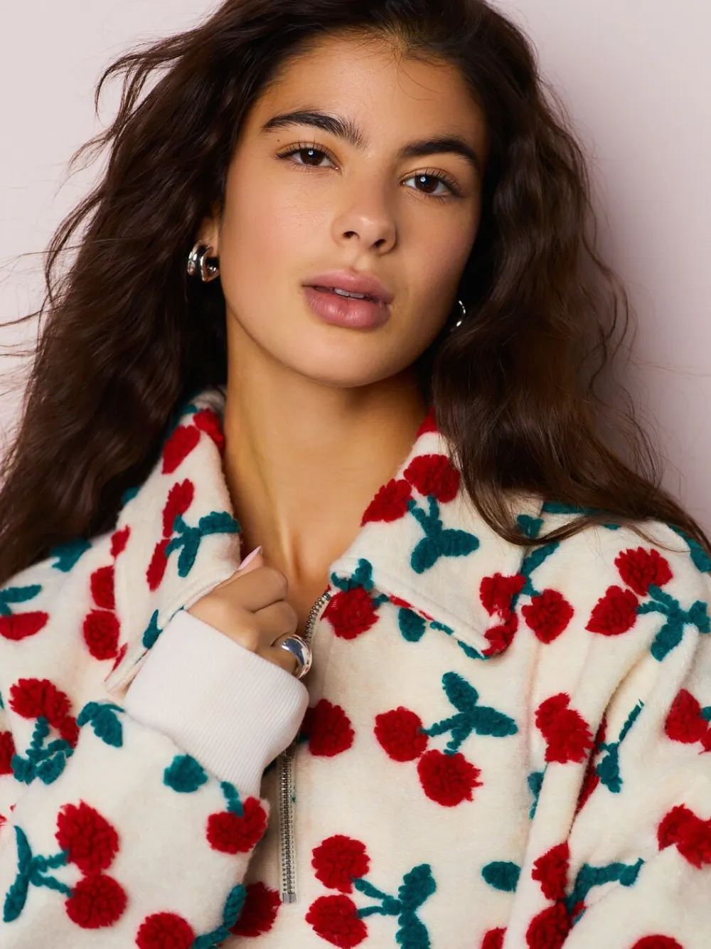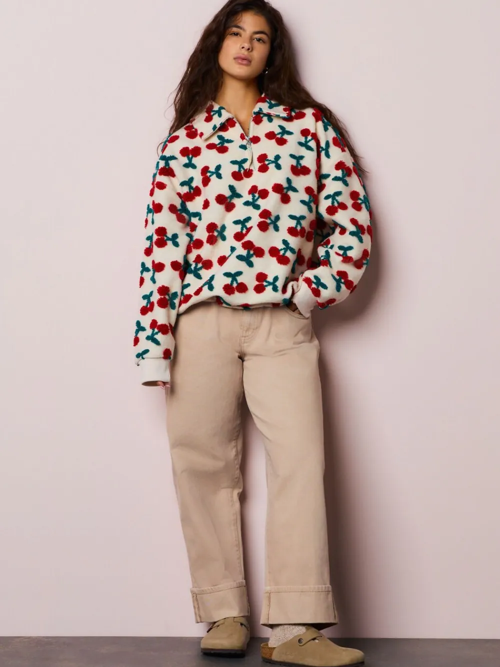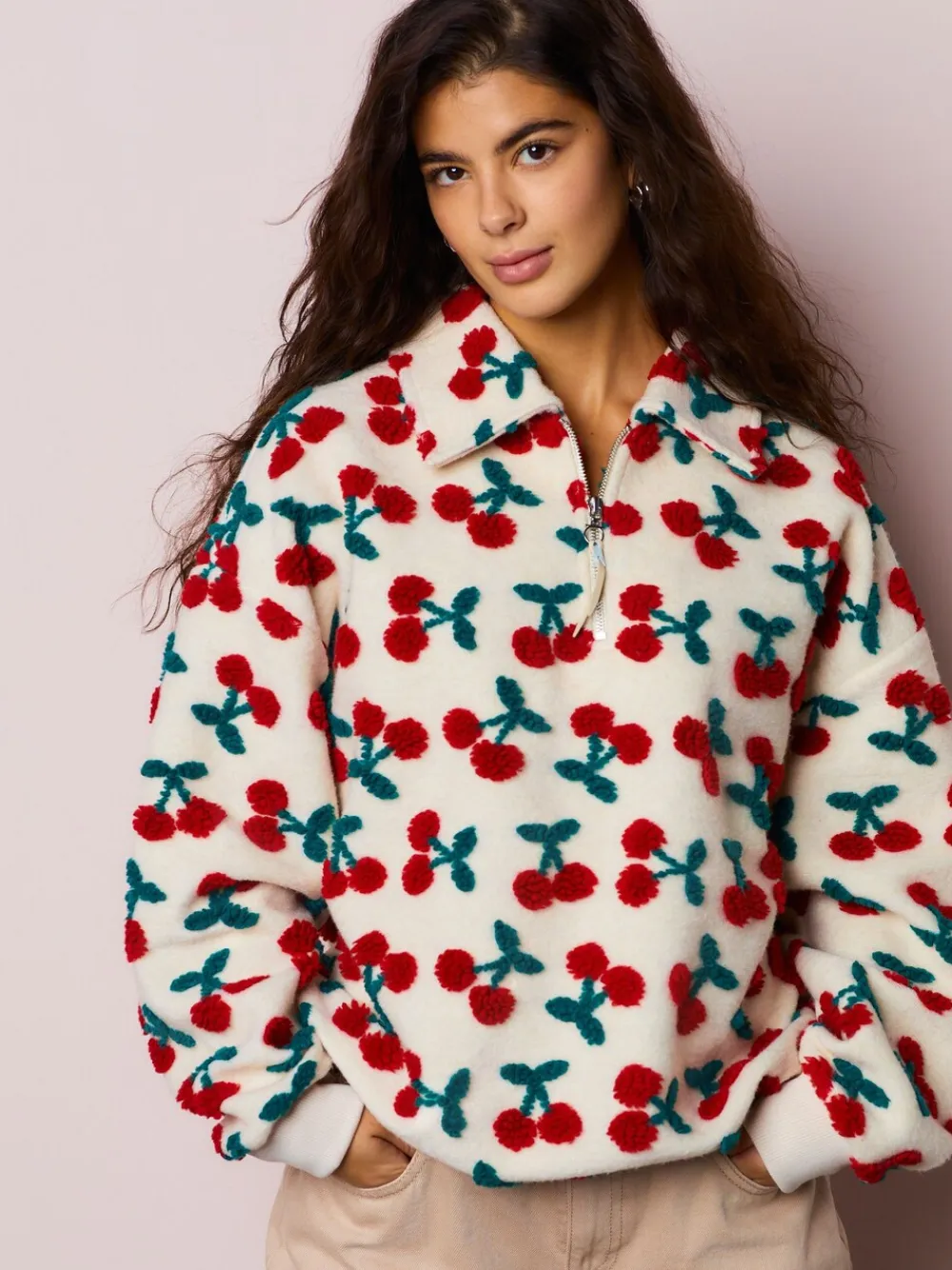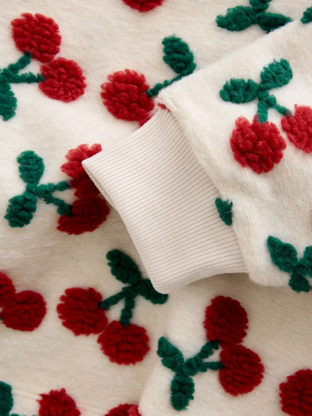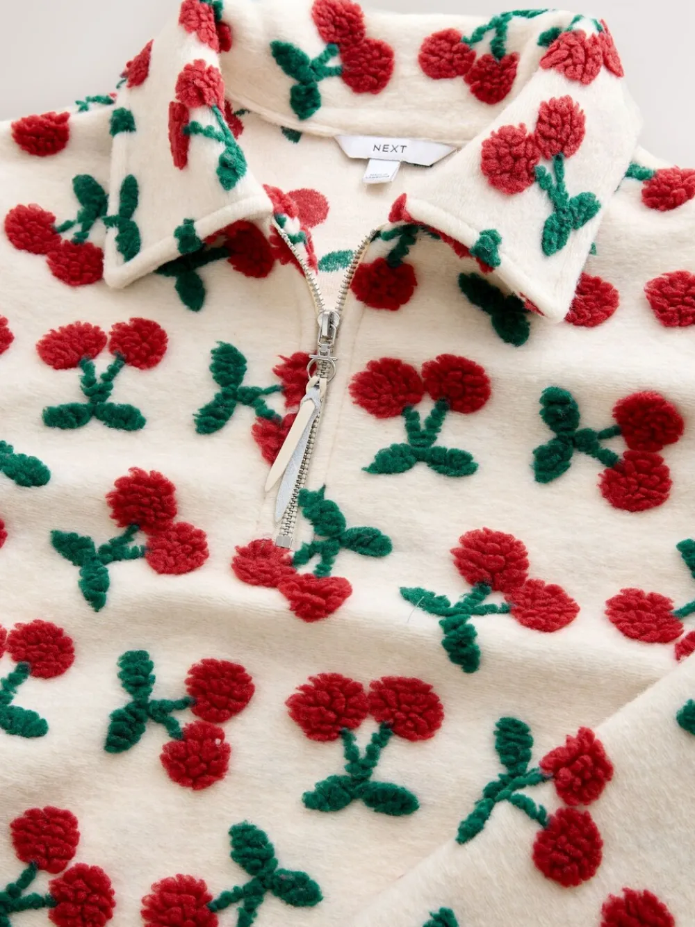 Next Red Ecru White Borg Cherry Graphic Zip Neck Fleece Clearance