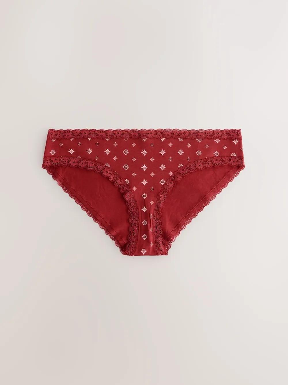 Next Red Heart/Green Check Bikini Cotton Lace Knickers 4 Pack