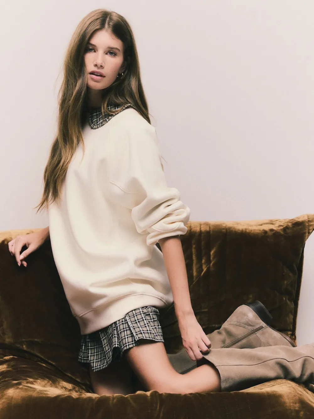 Next Relaxed Fit Heavyweight Longline Crew Neck Sweatshirt Ecru Off White New
