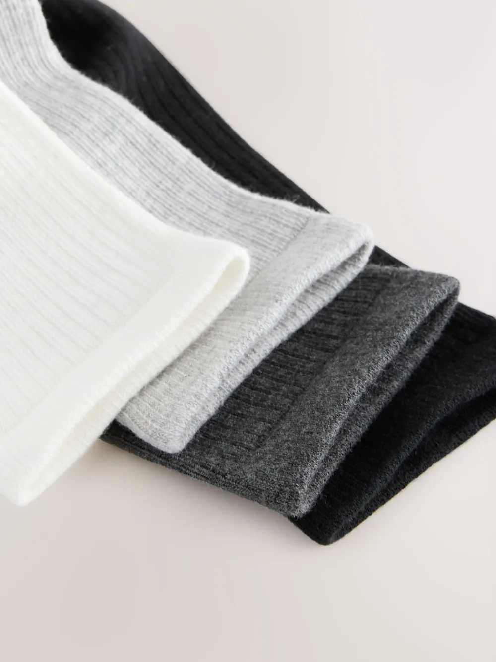 Next Ribbed Ankle Socks 4 Pack Black/White Clearance