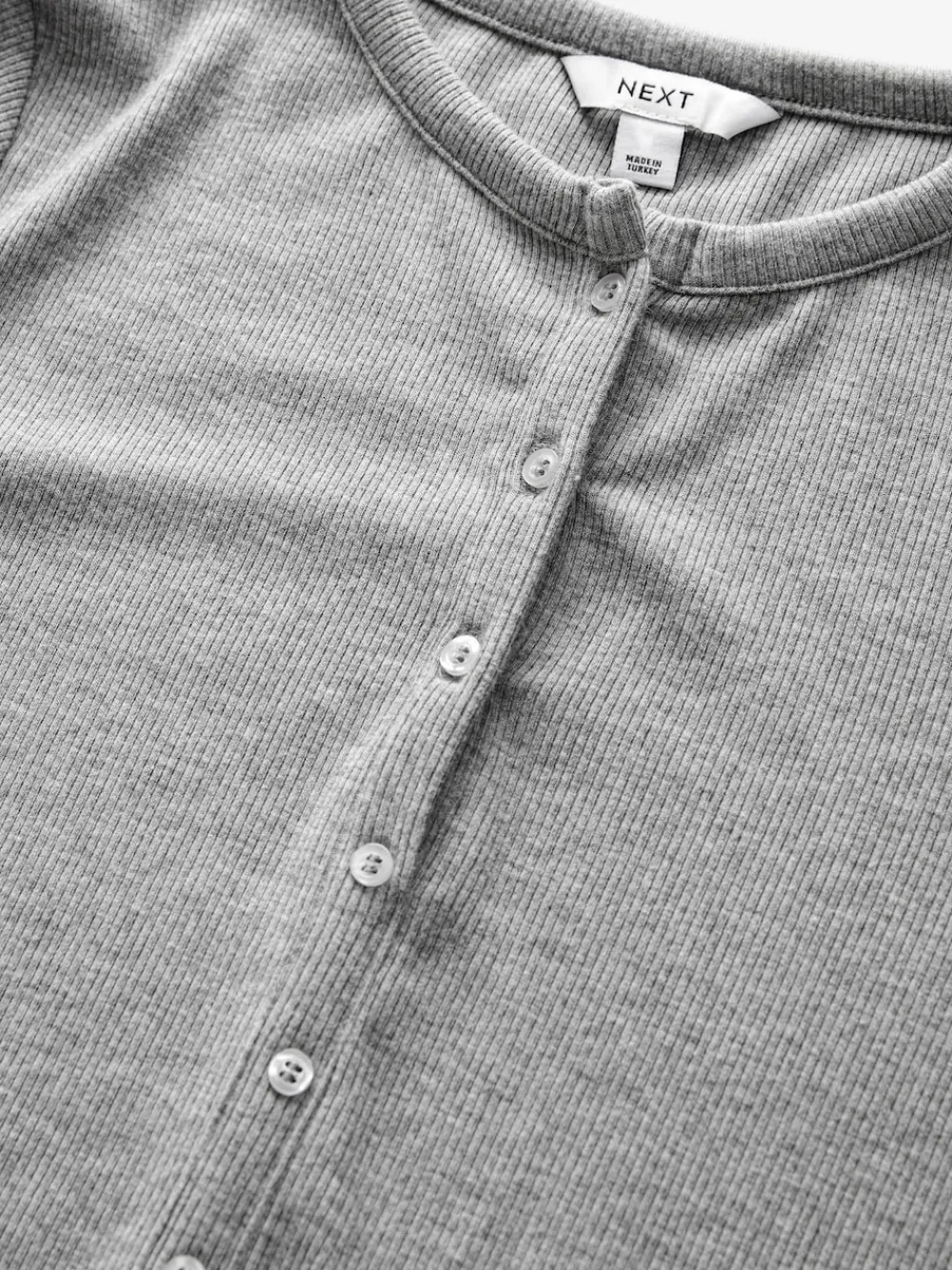 Next Ribbed Long Sleeve Henley Bodysuit Grey Online