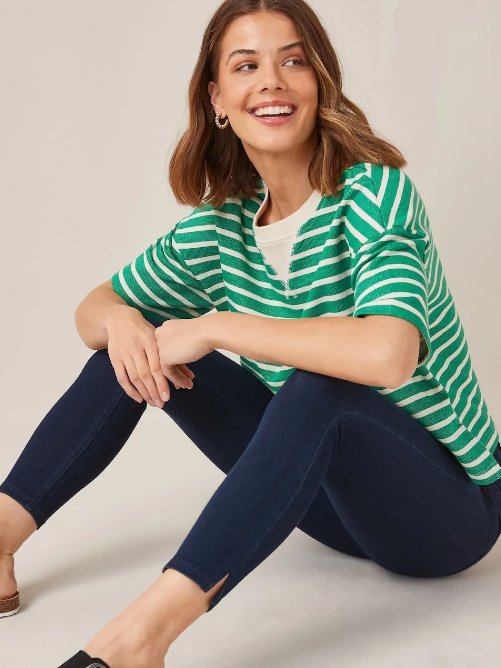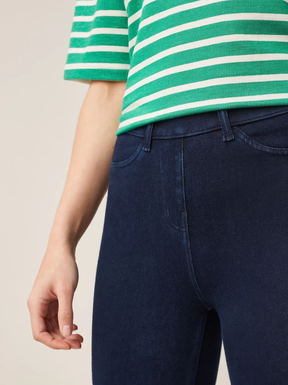 Our cropped jersey denim leggings in blue rinse are the perfect pairing to all your favourite tops and trainers. Made from a stretchy jersey denim blend, these mid-rise capri leggings are designed in a pull-on shape with a slim leg through to the calf. Ideal for when comfort is key, our jersey denim leggings are guaranteed to be your go-to for comfy, casual styling. Cropped style Stretchy jersey denim Pull-on Machine washable. 61% Cotton, 28% Recycled polyester, 11% Elastane. Items with the curve logo are available in sizes 18 and above., Our tall collection is designed to fit women 5’10” and above. This has been proportionally increased through the body, leg and sleeve to achieve the perfect fit. Available in sizes 8-20.