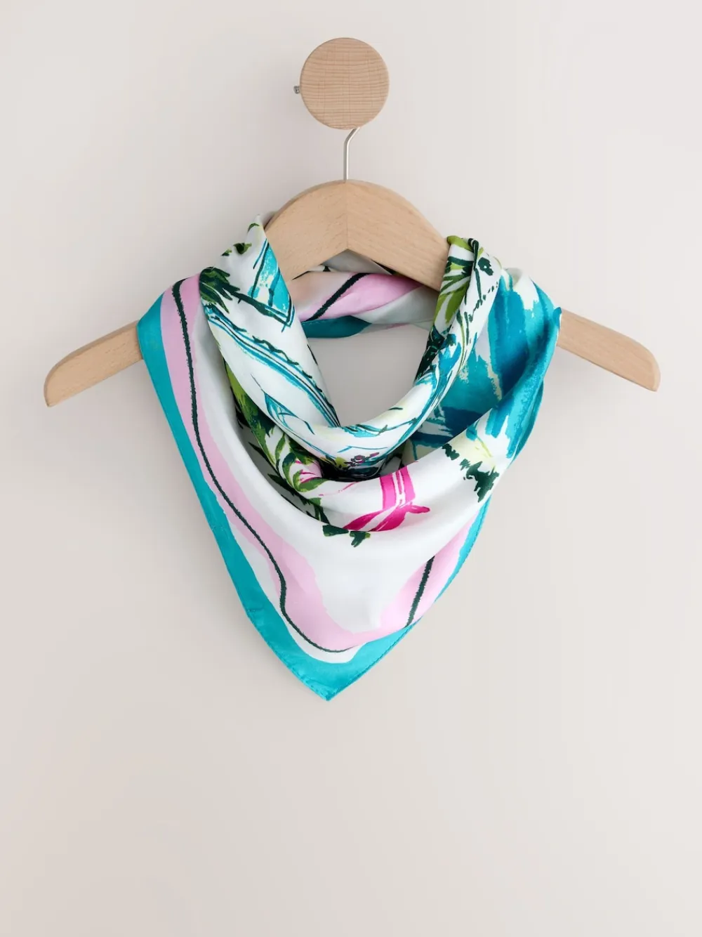 Next Satin Square Scarf Blue Poolside Scene Outlet