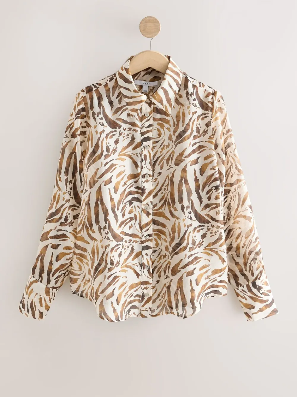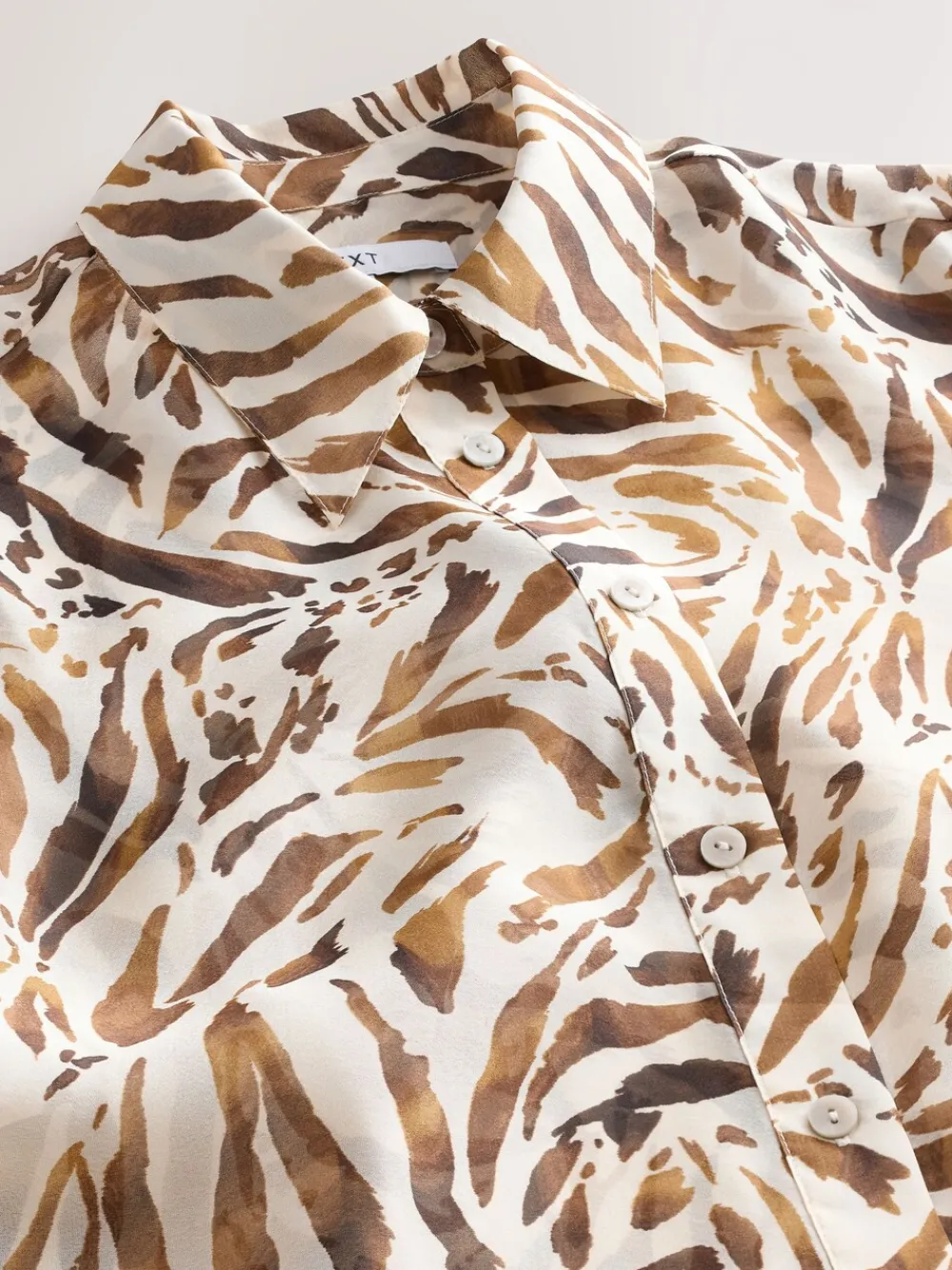 Next Sheer Long Sleeve Shirt Brown Animal Print Clearance