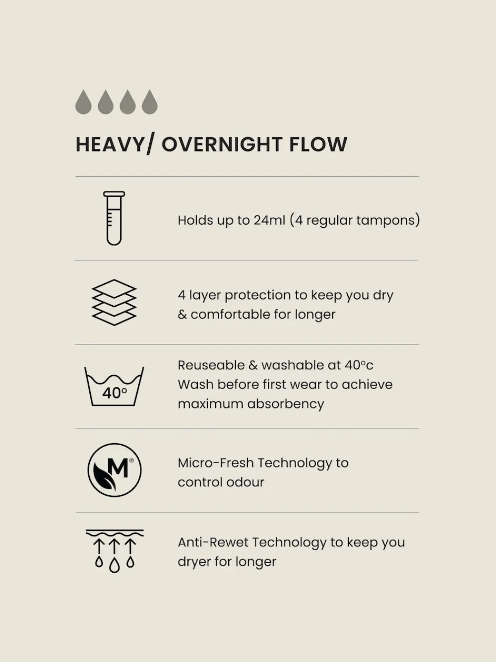 Heavy Flow Period Pants can be used on their own or as part of your usual routine on heavier days, available in this stylish boxer short design. Holds up to 24 ml/approx 4 regular tampons Four-layer protection keeps you dry and comfortable Simply wash and wear Wash before wearing for the first time to achieve maximum absorbency, do not use fabric softener and hang to dry Supersoft comfortable cotton blend fabric. Please Note: This product contains the biocide silver chloride (redefined from reaction mass of titanium dioxide and silver chloride) Machine washable. 2 x Briefs Main 95% Cotton, 5% Elastane. Gusset 96% Polyester, 4% Elastane. Items with the curve logo are available in sizes 18 and above.