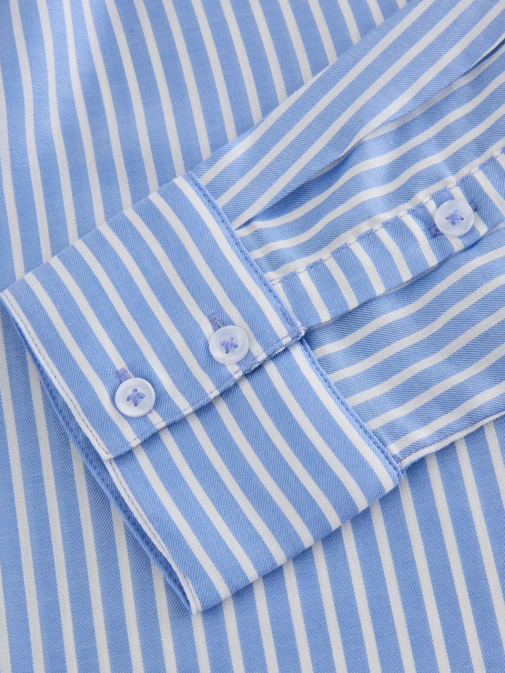 Dress to impress with our blue striped long-sleeved smart shirt. Crafted from a lightweight TENCEL™ and cotton blend, this long-sleeved button-down shirt is perfect for dressing up or down. The shirt features a button-up fastening, a V-shaped neckline and a classic collar. Relaxed shape Regular sizing Cotton-blend Button fastening V-neck collar Chest pocket Machine washable. 54% Cotton, 46% TENCEL™ lyocell. Items with the curve logo are available in sizes 18 and above.