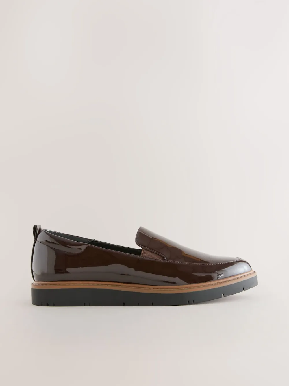 Next Standard/Wide Fit Forever Comfort® Slip On Clean Chunky Sole Loafers Brown Patent Sale