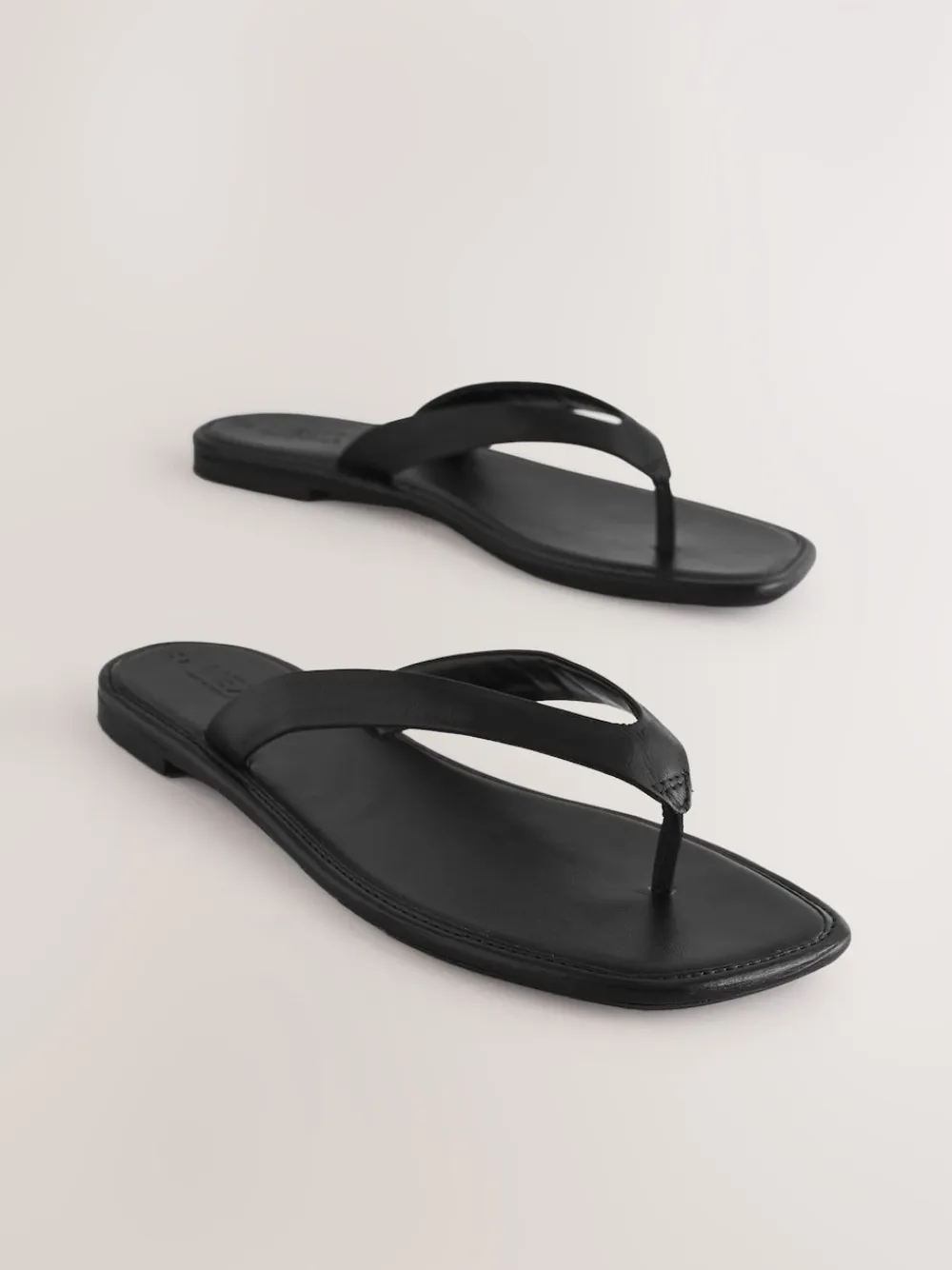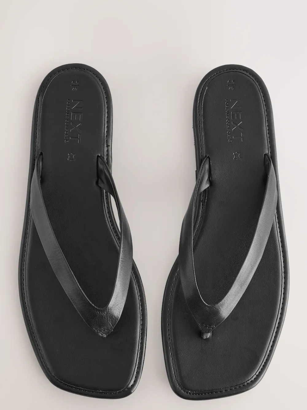 Next Standard/Wide Fit Square Toe Thong Sandals Black Leather Discount