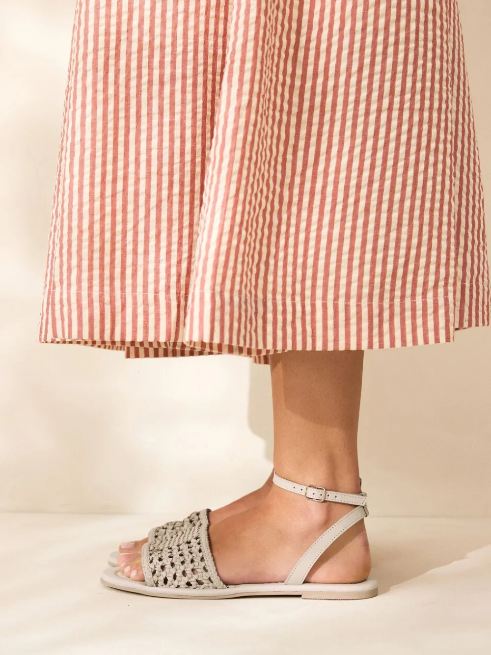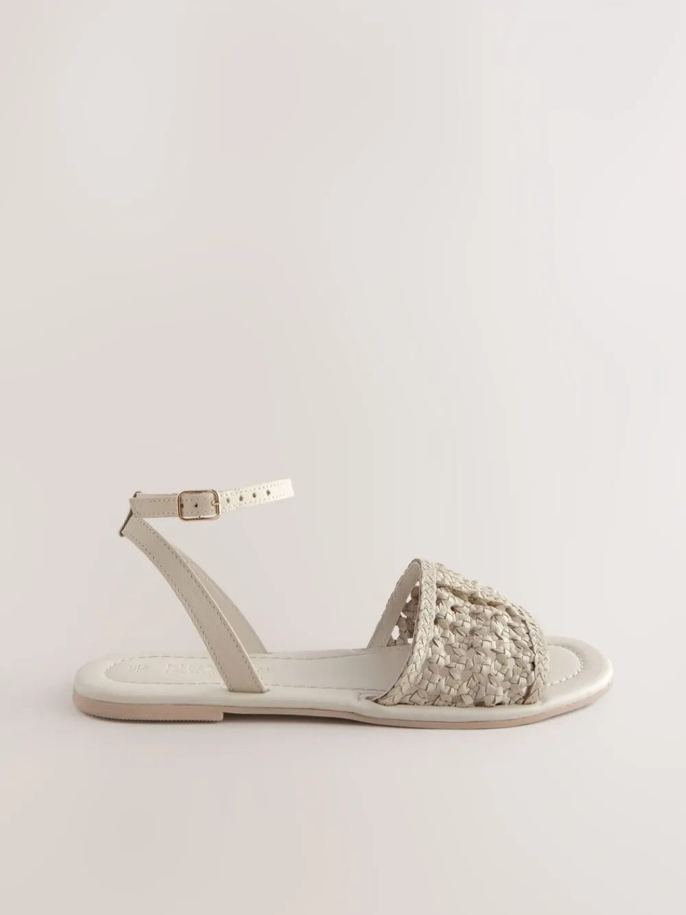 Next Standard/Wide Fit Woven Flat Sandals Bone White Leather