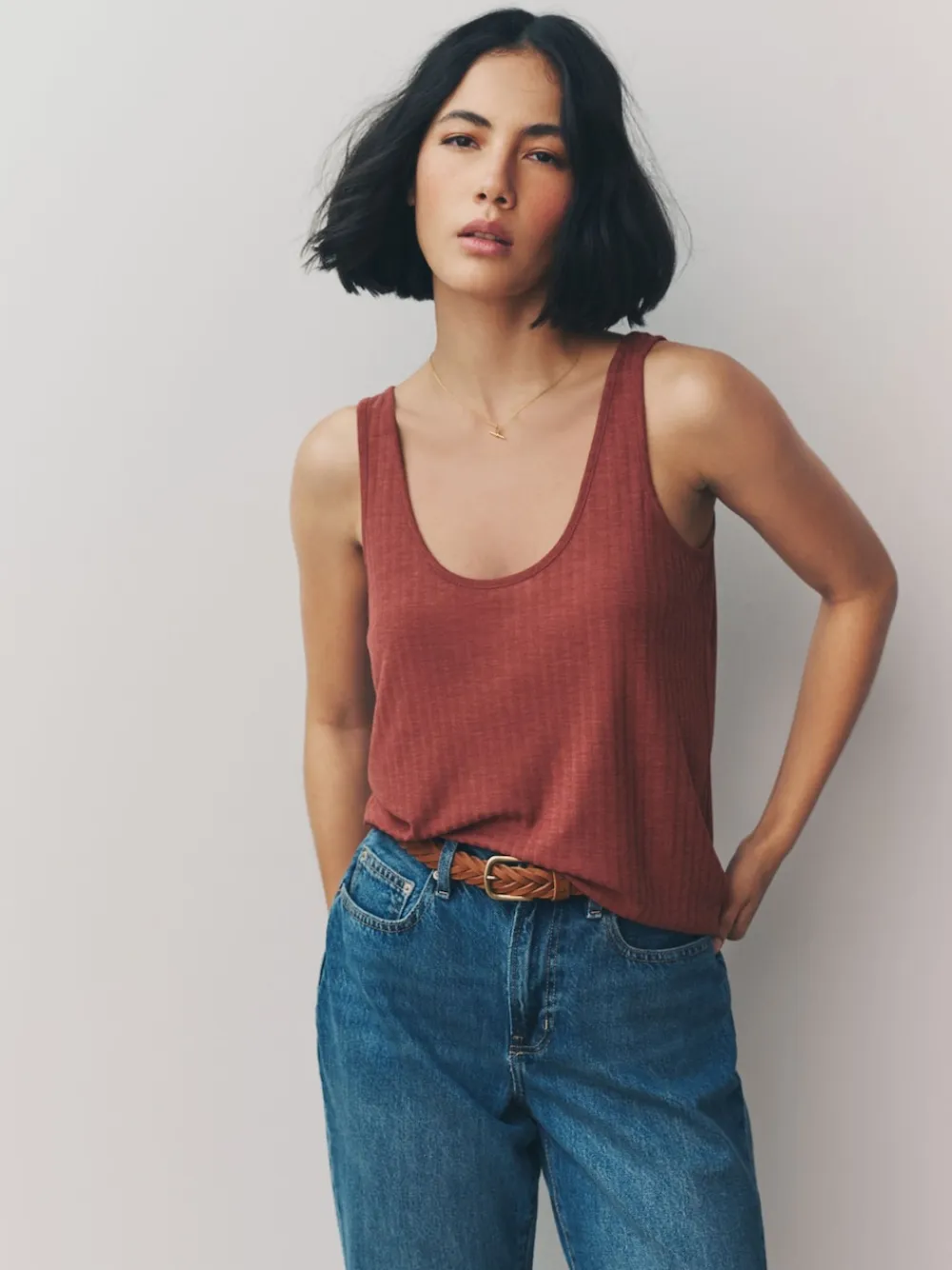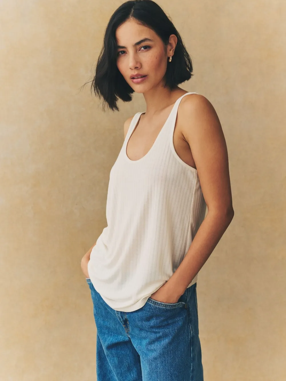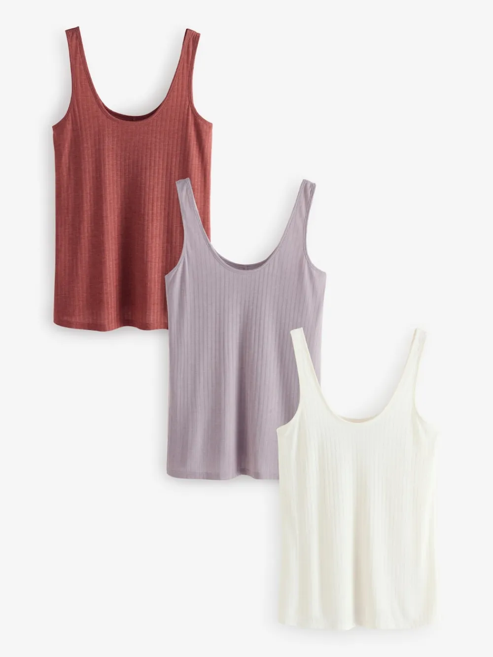 Next Strappy Scoop Neck Slouch Ribbed Vests 3 Pack Rust/Cream/Mauve Purple Sale