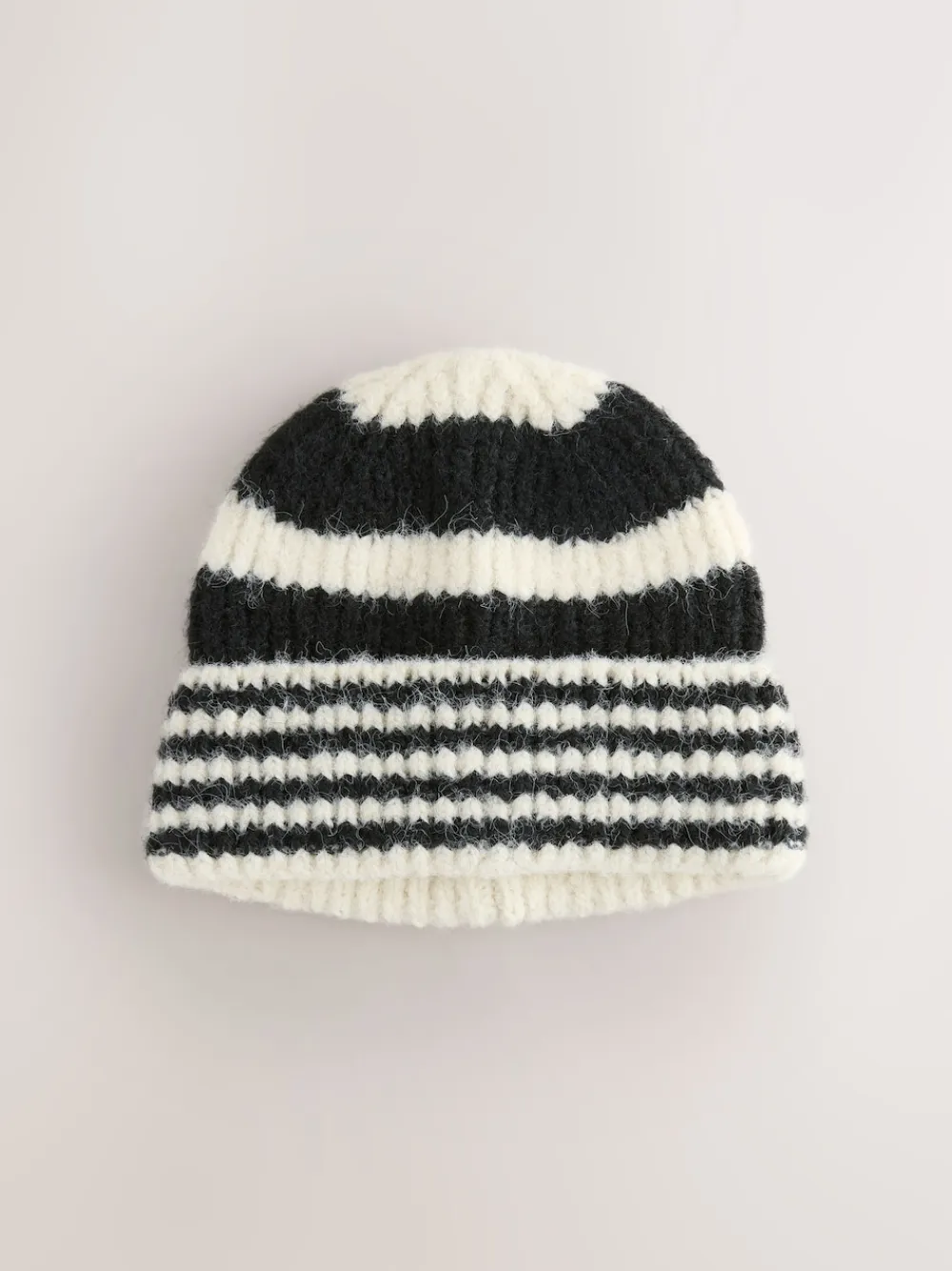 Next Stripe Knitted Beanie Hat Black/White Hot