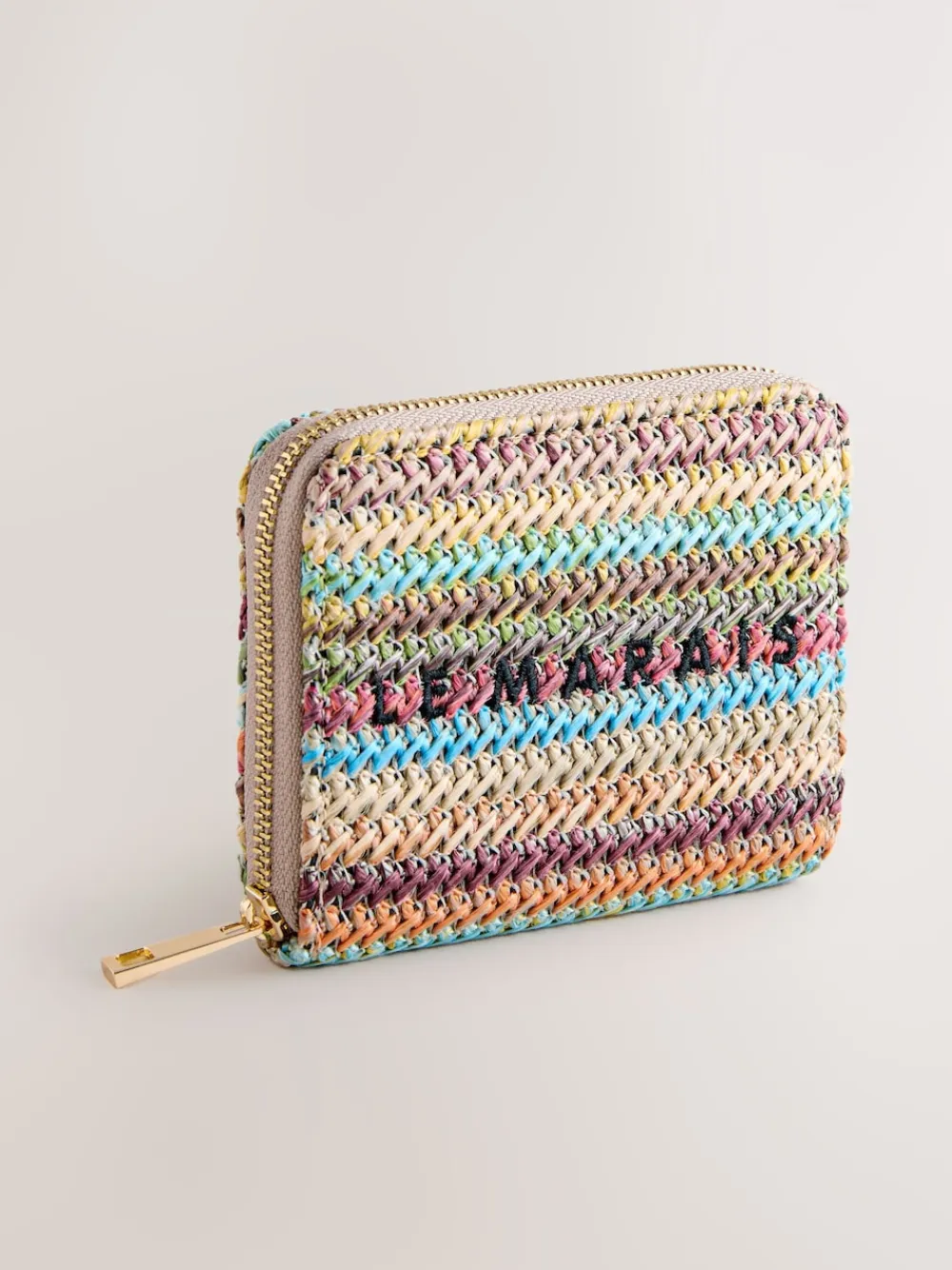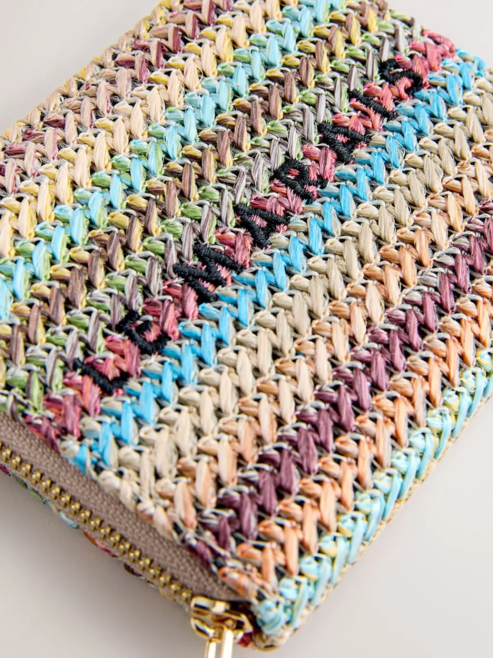 Organise your essentials in style with this vibrant stripe raffia effect purse, perfect for adding a touch of summer to your daily routine. This practical accessory features a secure zip-around fastening and multiple internal compartments, ensuring your cards and coins stay neatly arranged while you are on the move. Raffia effect fabric Zip around purse Internal compartments Stripe pattern Height 9cm Width 11cm Depth 2cm Outer 100% Polypropylene. Lining 100% Recycled polyester. Trim 100% PU.