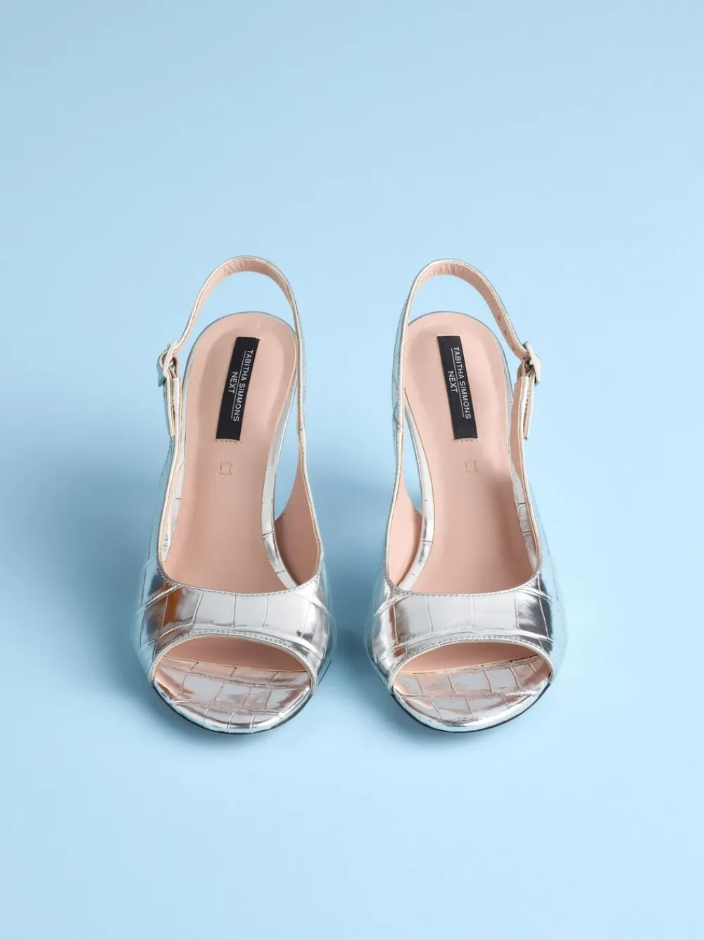 Be the first to review “Next Tabitha Simmons X Ivy Peep Toe Sling Back Heels Silver Croc Embossed Online” Cancel reply