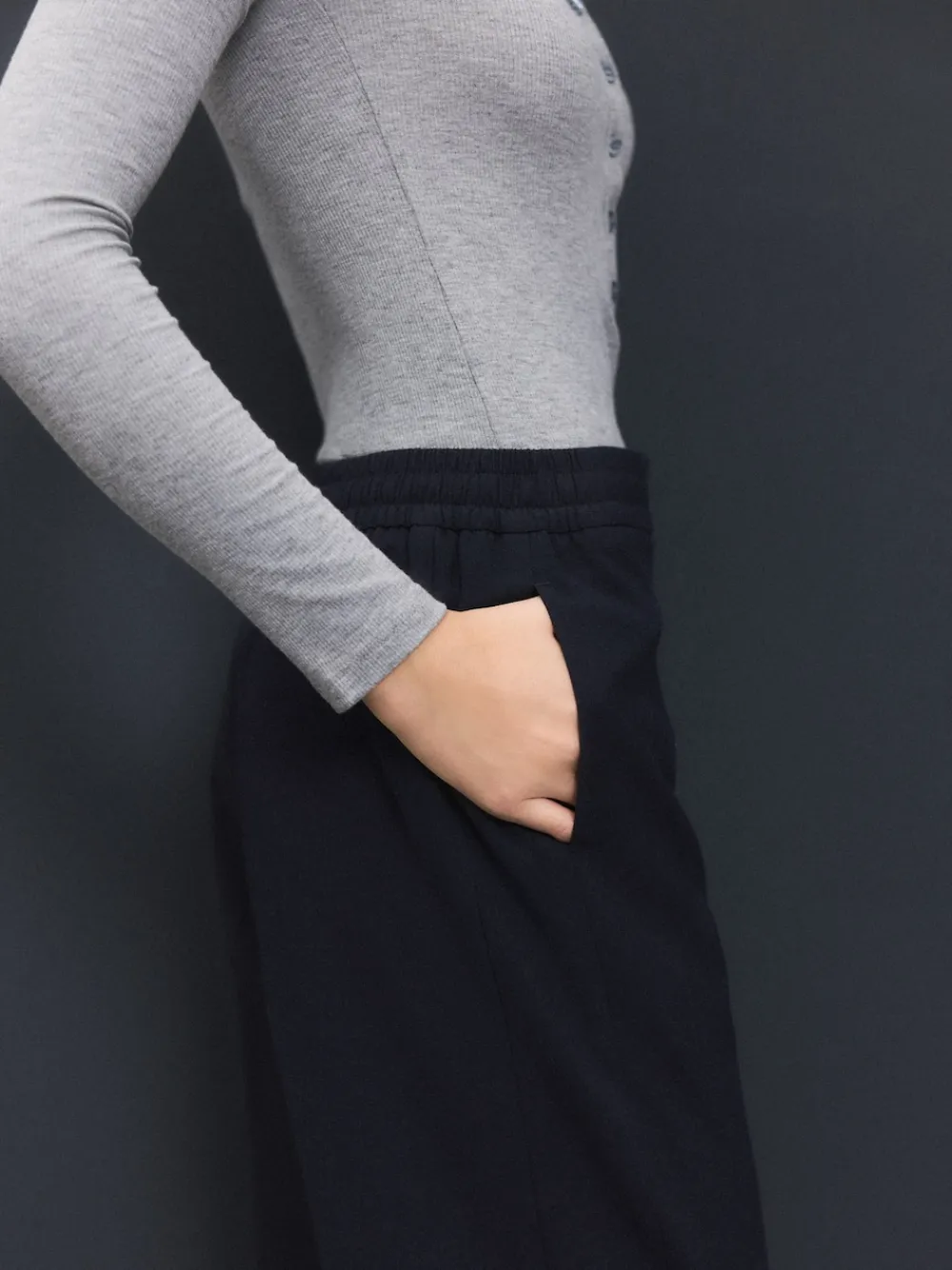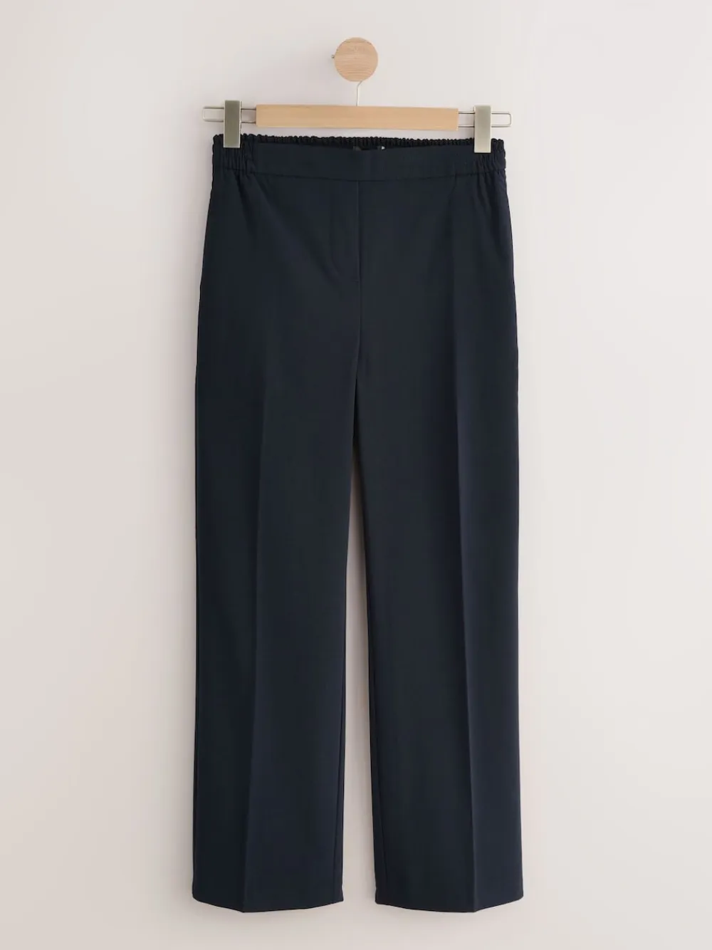Designed for the everyday, our wide leg tailored trousers are a versatile addition to your work wardrobe. These mid-rise trousers feature a flattering wide leg silhouette and are crafted from a comfortable stretch fabric with an elastic back waistband, ensuring both style and ease of movement throughout your workday. Elastic back Wide leg Matching blazer available Short to fit inside leg 27″ / 69cm. Regular to fit inside leg 29″ / 74cm. Long to fit inside leg 31″ / 79cm. XL Tall to fit inside leg 33″ / 84cm. XXL Tall to fit inside leg 35″ / 89cm. Machine washable. 66% Recycled polyester, 25% Viscose, 7% Wool, 2% Elastane. Items with the curve logo are available in sizes 18 and above., Our tall collection is designed to fit women 5’10” and above. This has been proportionally increased through the body, leg and sleeve to achieve the perfect fit. Available in sizes 8-20.