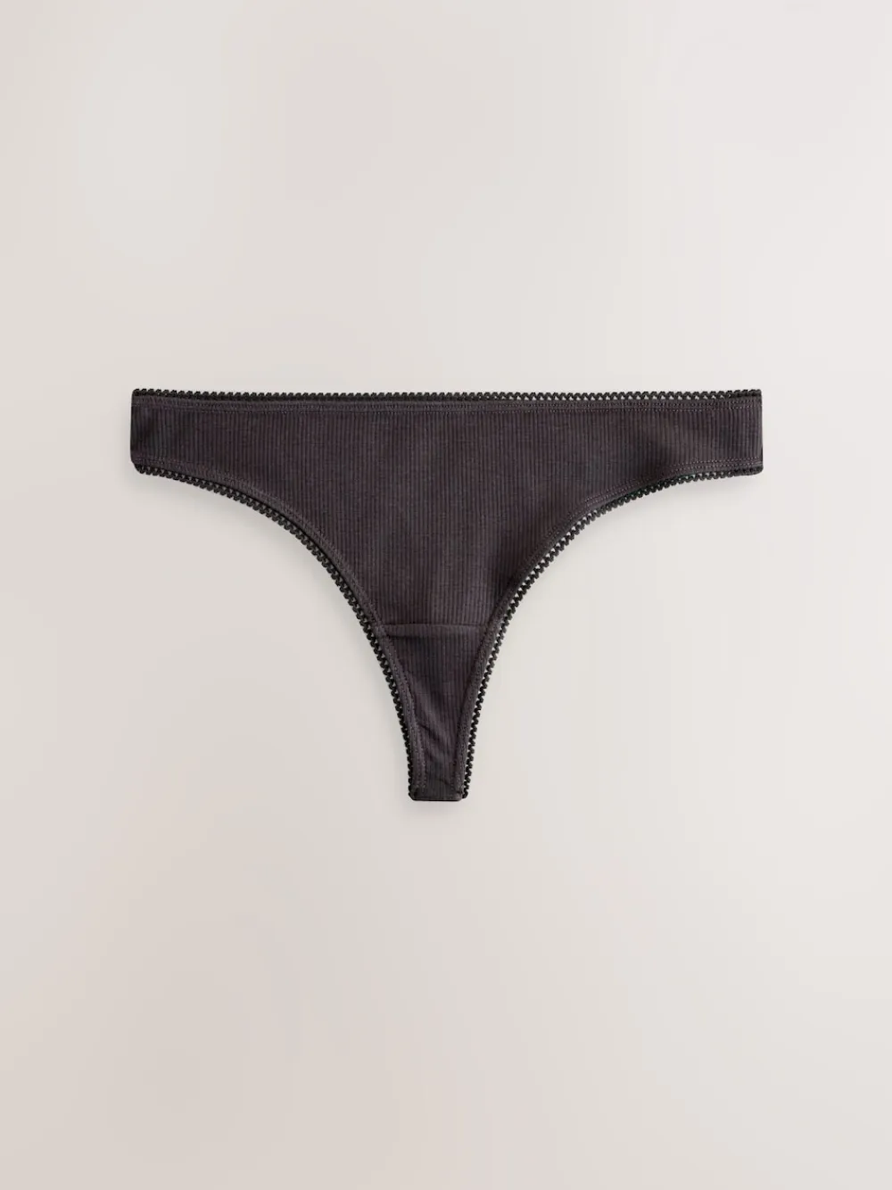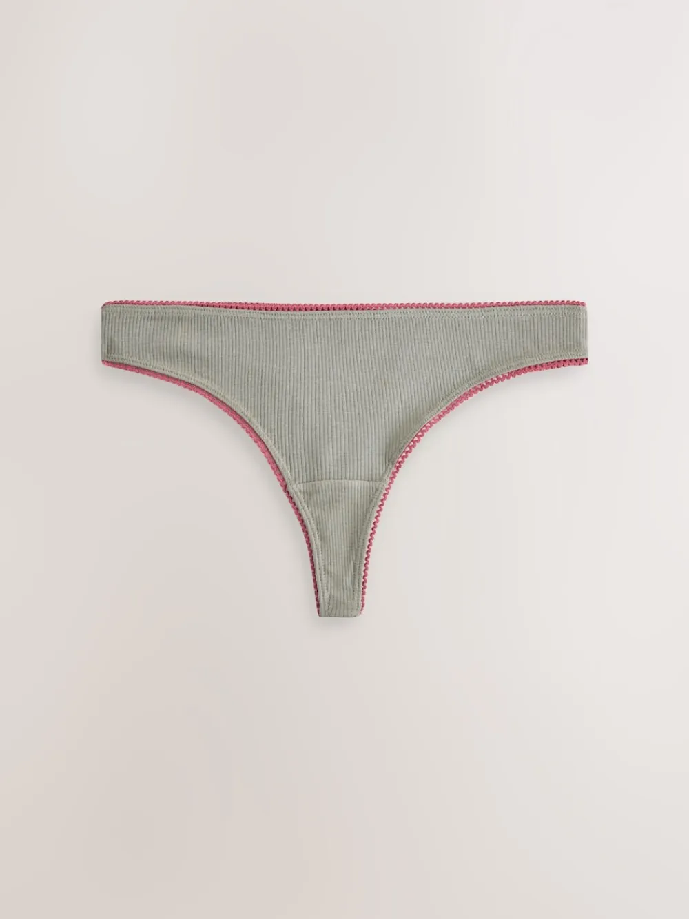 Next Thong Cotton Rib Knickers 3 Pack Black/Rose/Olive New