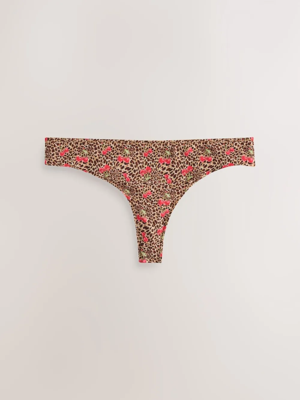 Next Thong Microfibre Knickers 5 Pack Leopard/Cherry Print New