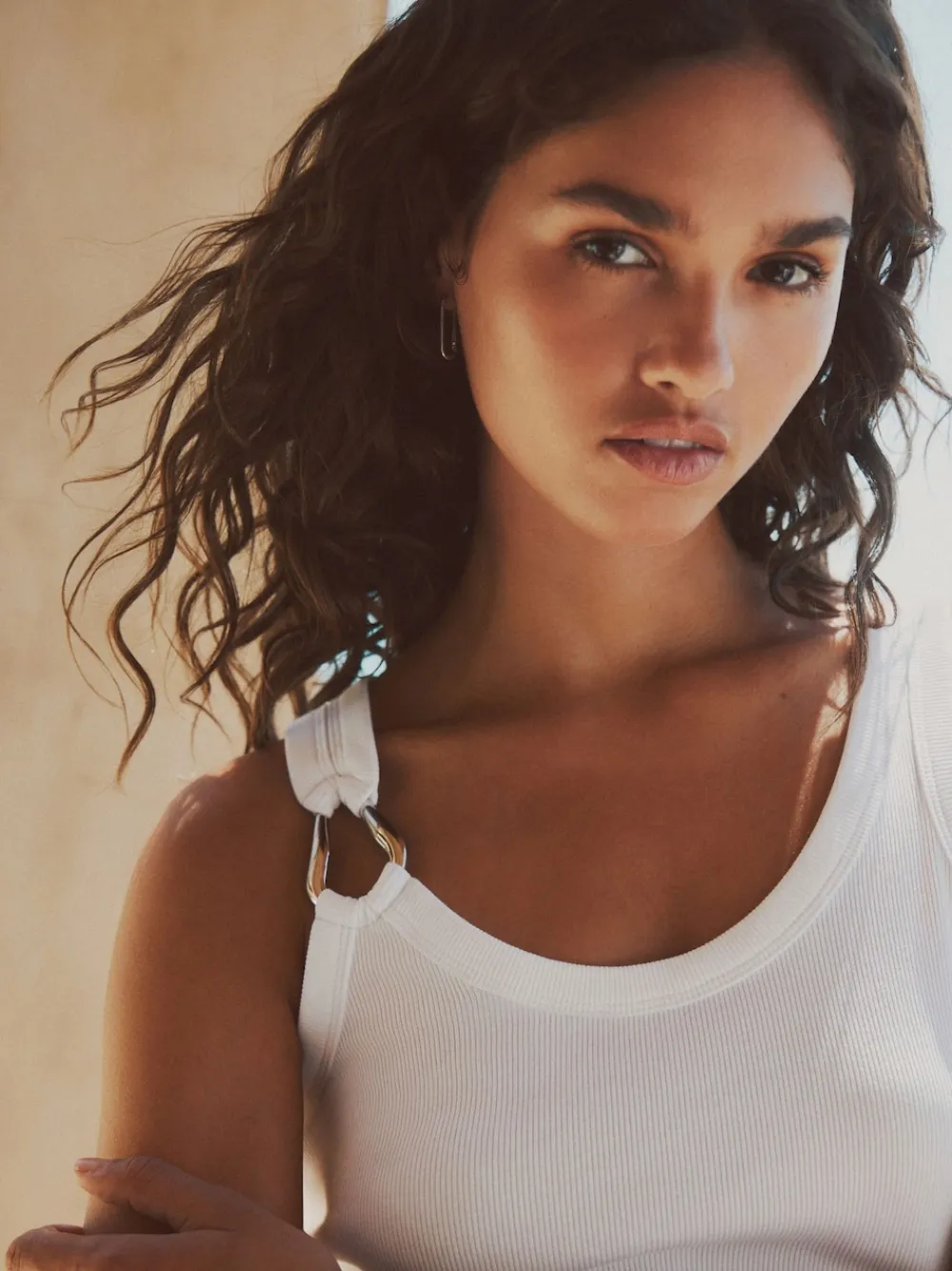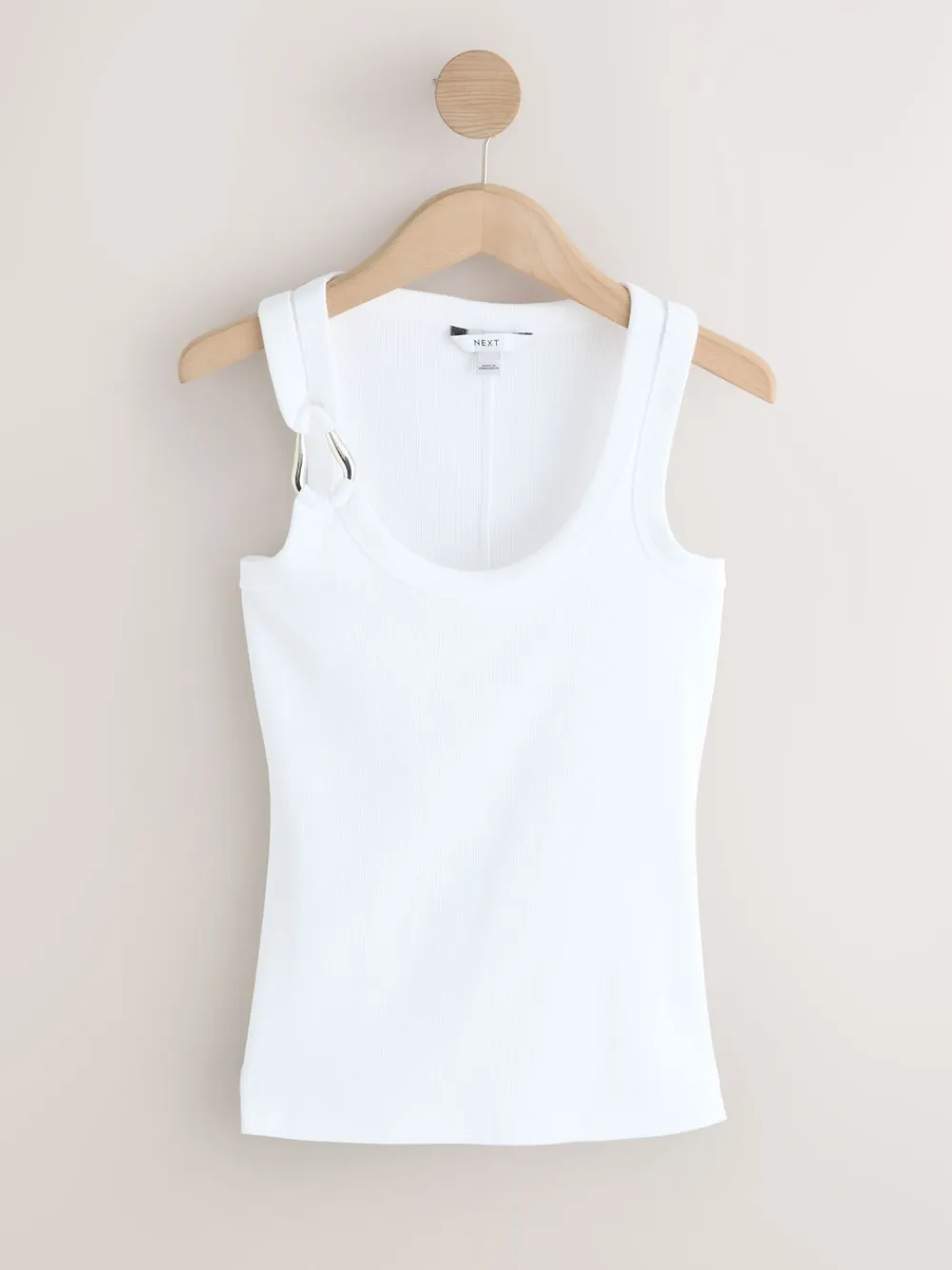 Next Trim Hardware Detail Racer Ribbed Vest Top White/Silver Best