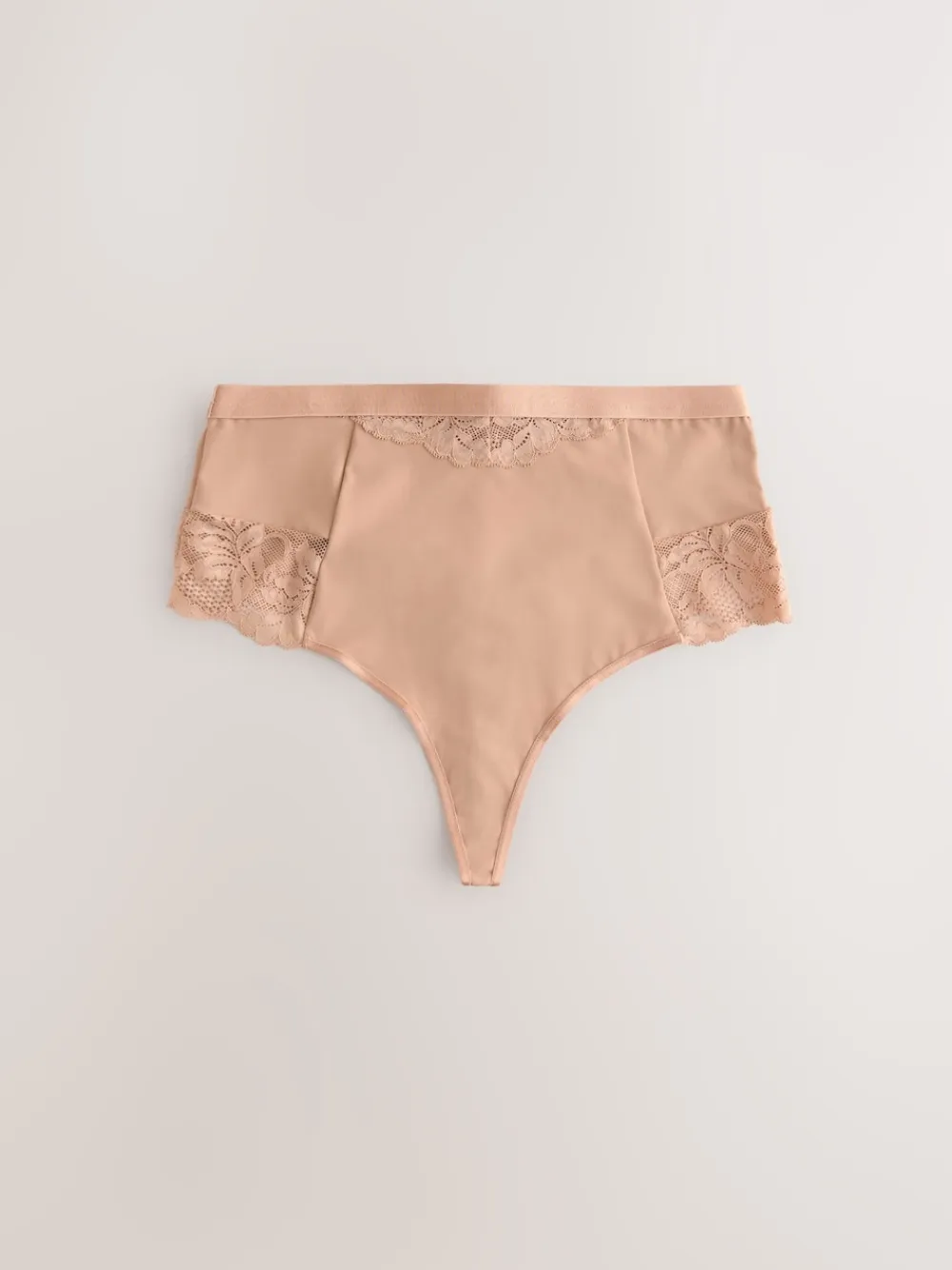 This two-pack of shaping thongs is high-waisted for a comfortable and flattering fit underneath any outfit. Featuring soft lace for added feminine detail. Pack of two. Lace trim detail. High-waist thongs. Tummy control. Elasticated waistband. Cotton gusset. 2 x Knickers Main 63% Nylon, 28% Elastane, 9% Recycled Nylon. Gusset 100% Cotton. Items with the curve logo are available in sizes 18 and above.