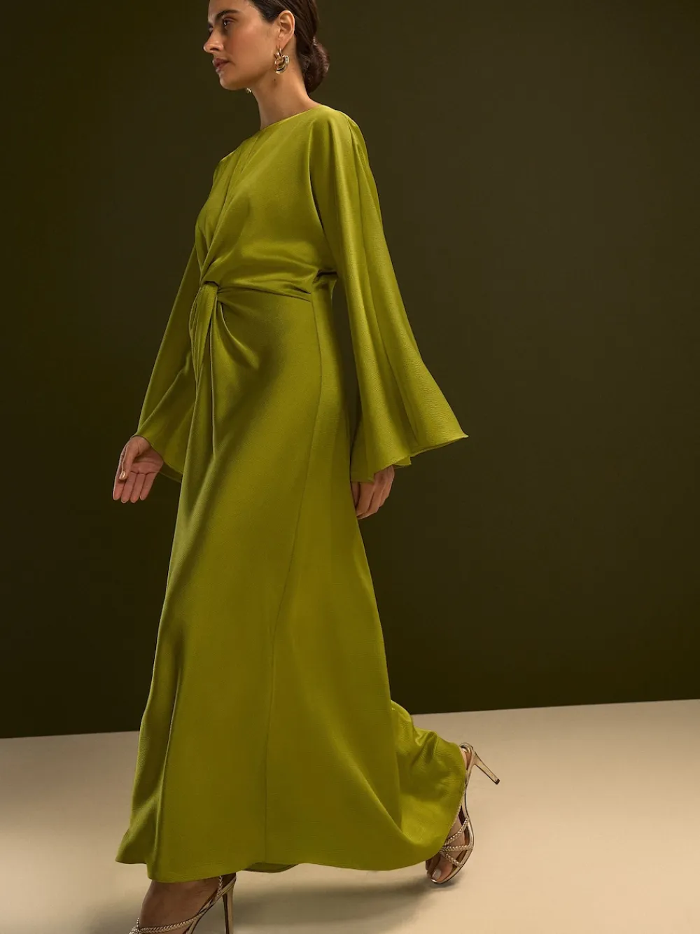 Next Twist Front Long Sleeve Satin Maxi Dress Lime Green New