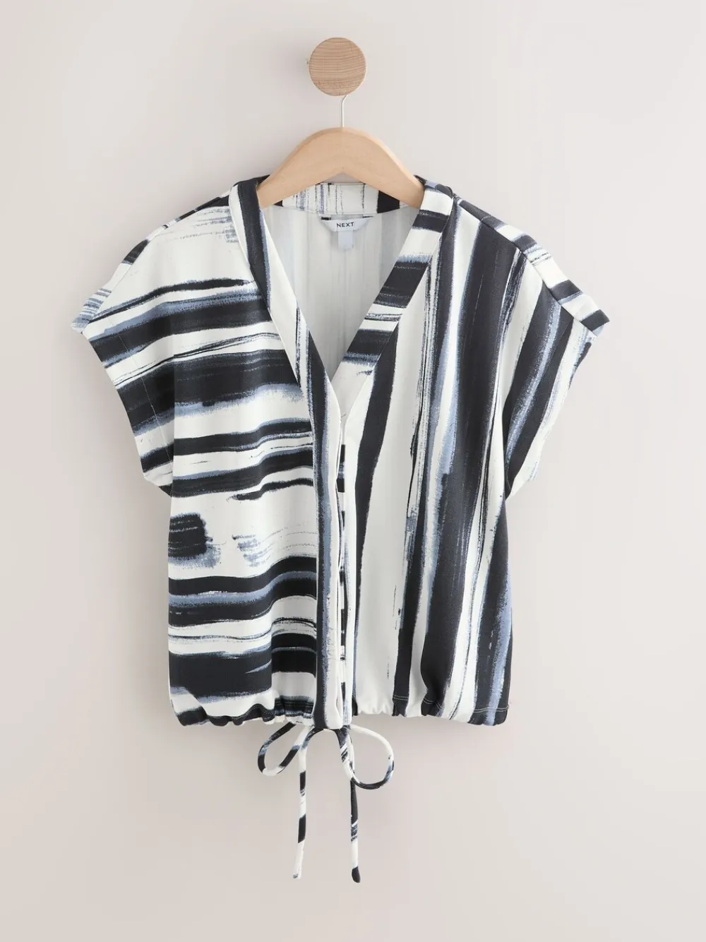 Next V-Neck Short Sleeved Tie Waist Top Navy/Black/White Clearance