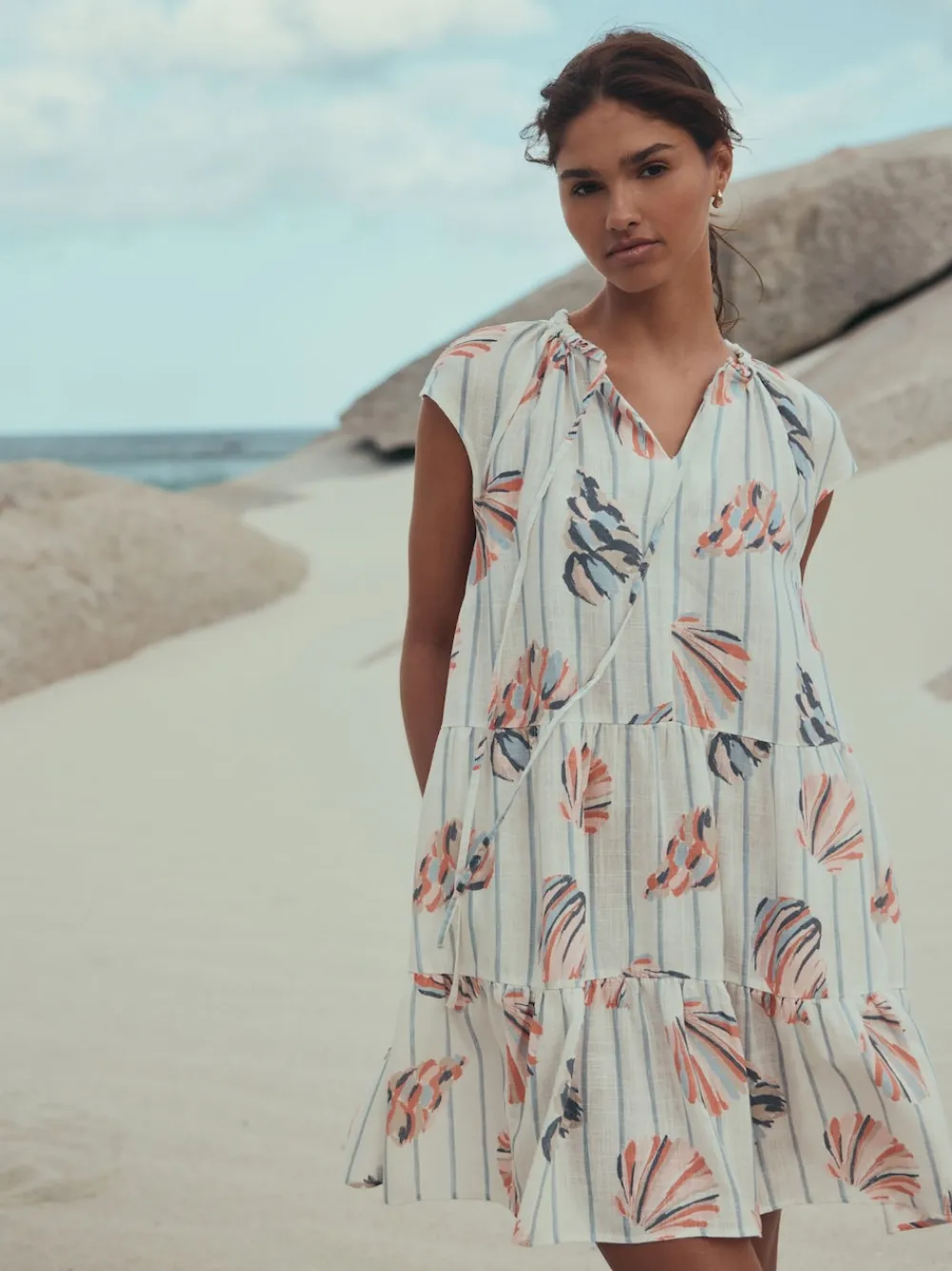 Achieve laid-back polish with this modern mini dress. Crafted from linen for a breathable feel, it features a ruffled V-neckline and grown-on sleeves for effortless shape. The tiered design creates a flattering, relaxed silhouette, making it a summer staple with everyday attitude. Mini length Linen material Blue/Pink Shell Print Ruffled V-neckline Grown on Sleeves Tiered design Pockets Regular side neck to hem 35.5″ / 90cm. Machine washable. 70% TENCEL™ lyocell, 30% Linen. Items with the curve logo are available in sizes 18 and above., Our tall collection is designed to fit women 5’10” and above. This has been proportionally increased through the body, leg and sleeve to achieve the perfect fit. Available in sizes 8-20.