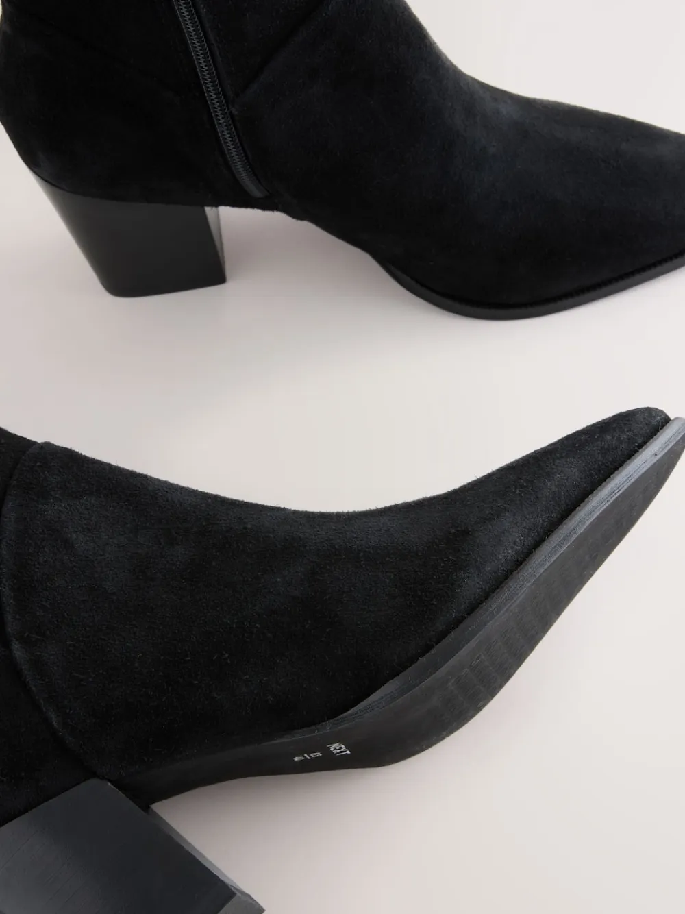 Next Western Block Heel Ankle Boots Black Suede Outlet