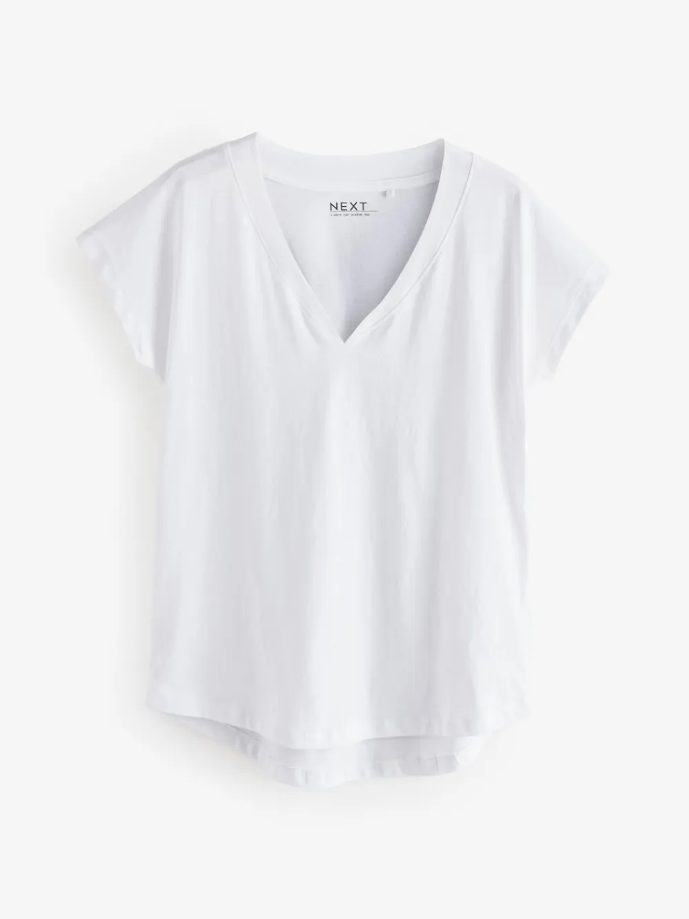 Next White/Grey/Khaki/Rust/Brown V-Neck Cap Sleeve 100% Cotton T-Shirts 5 Pack Clearance