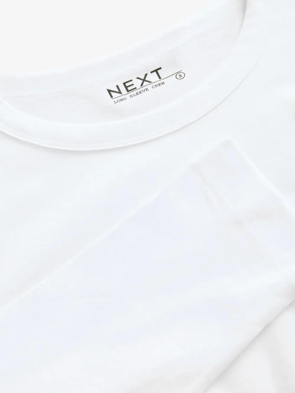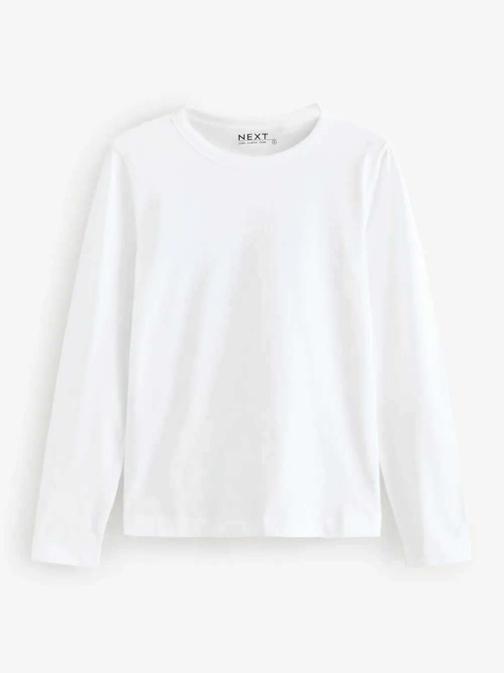 This dependable and versatile white long sleeve t-shirt is made from pure cotton and finished with a crewneck collar. Perfect for everyday wear or the office. Regular fit Crewneck collar 100% cotton Long sleeves 100% Cotton.