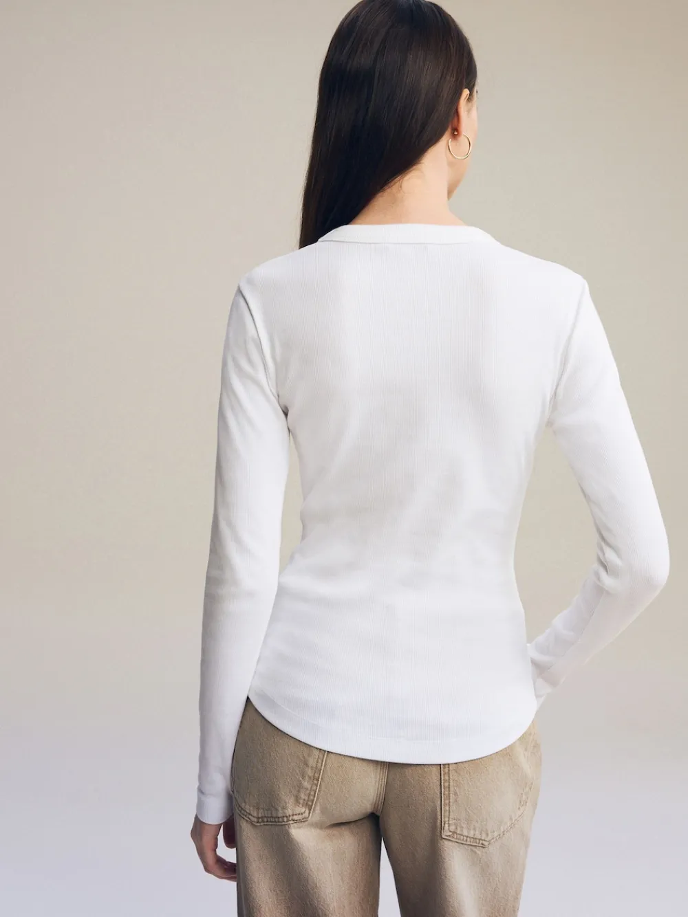 A wardrobe staple, our white long-sleeve top offers endless wearing opportunities. Made from soft and stretchy cotton, the classic slash neck has a ribbed finish and can be easily layered under jumpers when the temperatures drop. Alternatively, team it with a pair of jeans, heels and a blazer for a chic evening look. Regular fit Long sleeve Crew neck Ribbed finish Soft and stretchy cotton Machine washable. 95% Cotton, 5% Elastane. Items with the curve logo are available in sizes 18 and above.