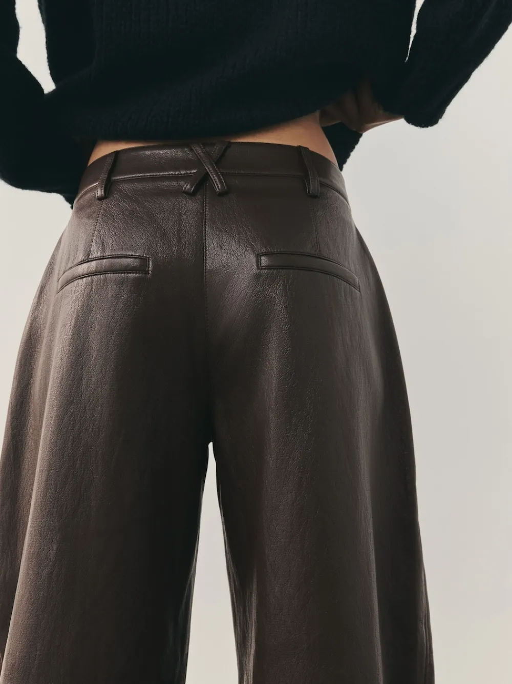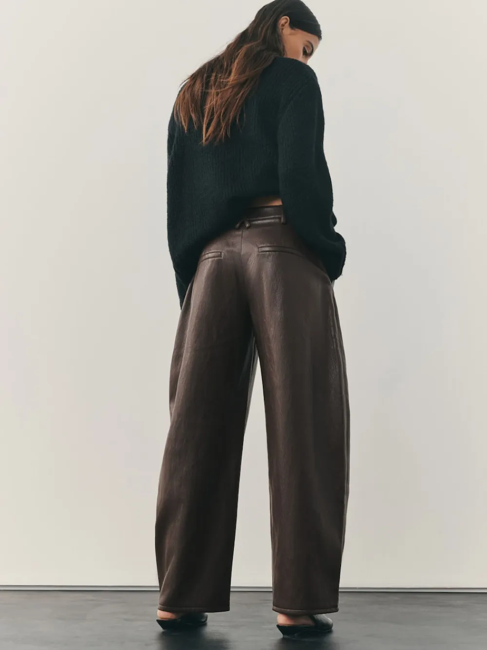 Nothing Ordinary Faux Leather Barrel Leg Trousers Chocolate Brown Hot