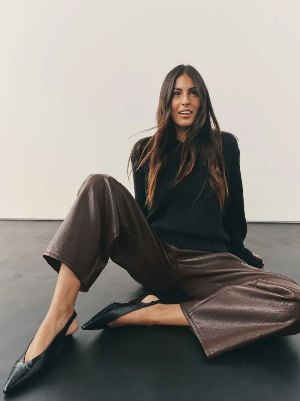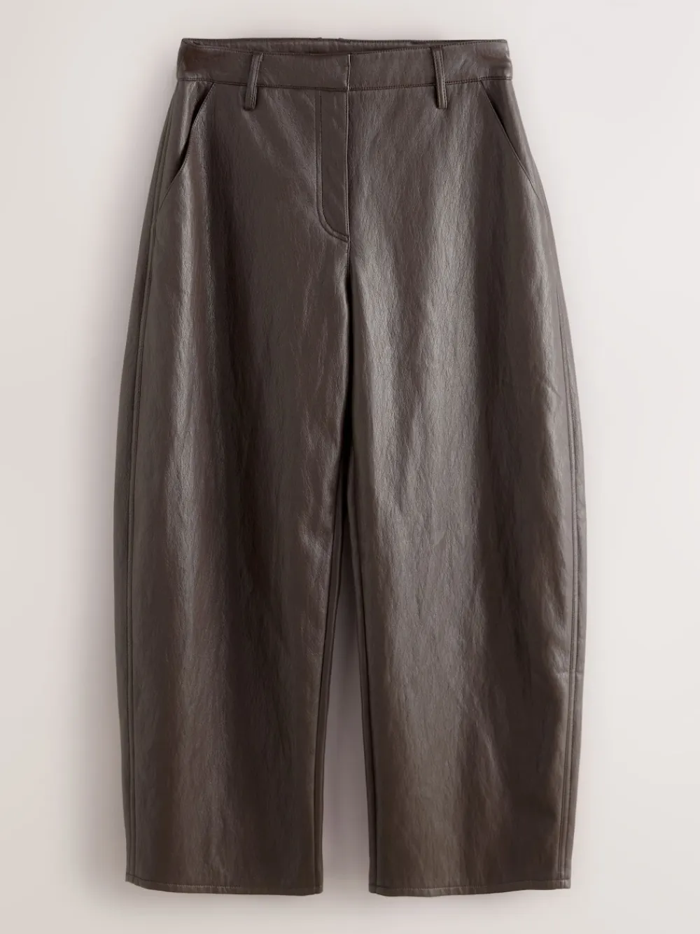 Upgrade your wardrobe with the Nothing Ordinary Faux Leather Barrel Leg Trousers. These trousers redefine a classic, blending the rebellious edge of leather with a sophisticated, modern silhouette.Crafted from soft faux leather, they offer a luxurious feel and a comfortable fit. The unique barrel leg shape tapers elegantly, creating a fashion-forward look that’s both chic and easy to wear. Featuring practical belt loops, a clean hook and eye fastening, and functional front pockets, these trousers are designed to be a versatile and inspiring piece you’ll turn to again and again. Soft faux leather Modern fit Hook and eye fastening Main 100% Polyurethane. Backing 76% Viscose, 14% Polyester, 6% Cotton, 4% Metallised fibre.