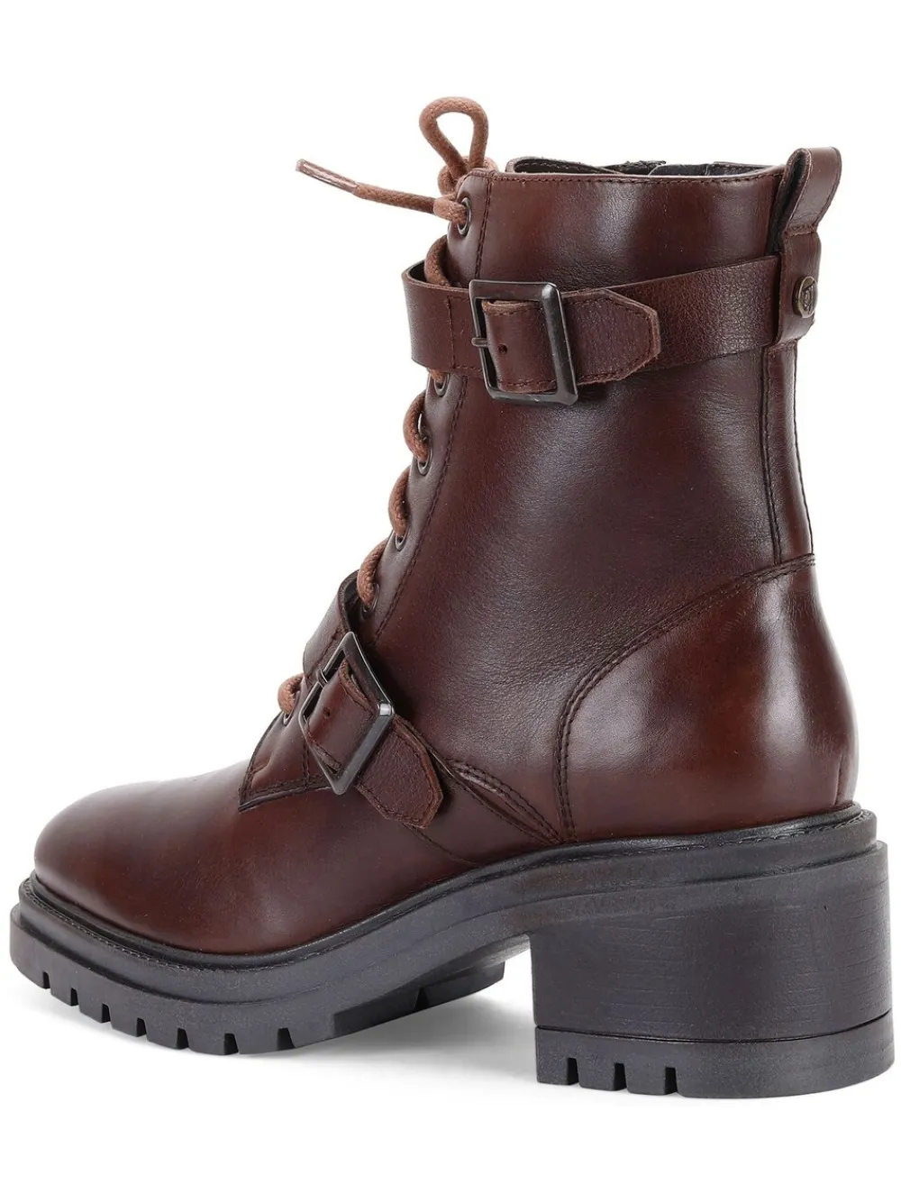Off The Hook Parkside Block Heel Leather Combat Boots Brown New
