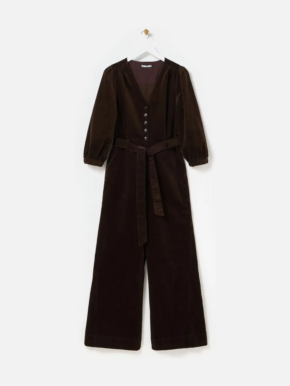 Oliver Bonas Brown Corduroy V-Neck Tie Waist Jumpsuit Best