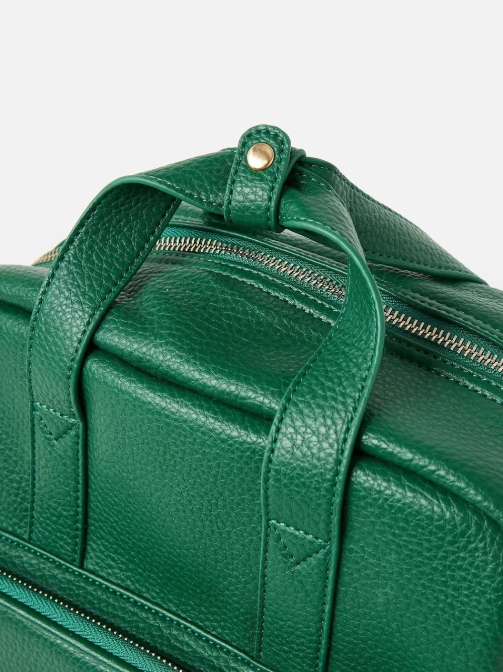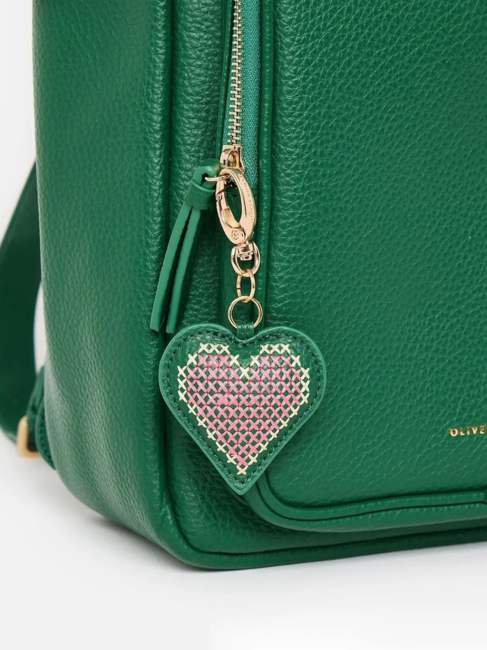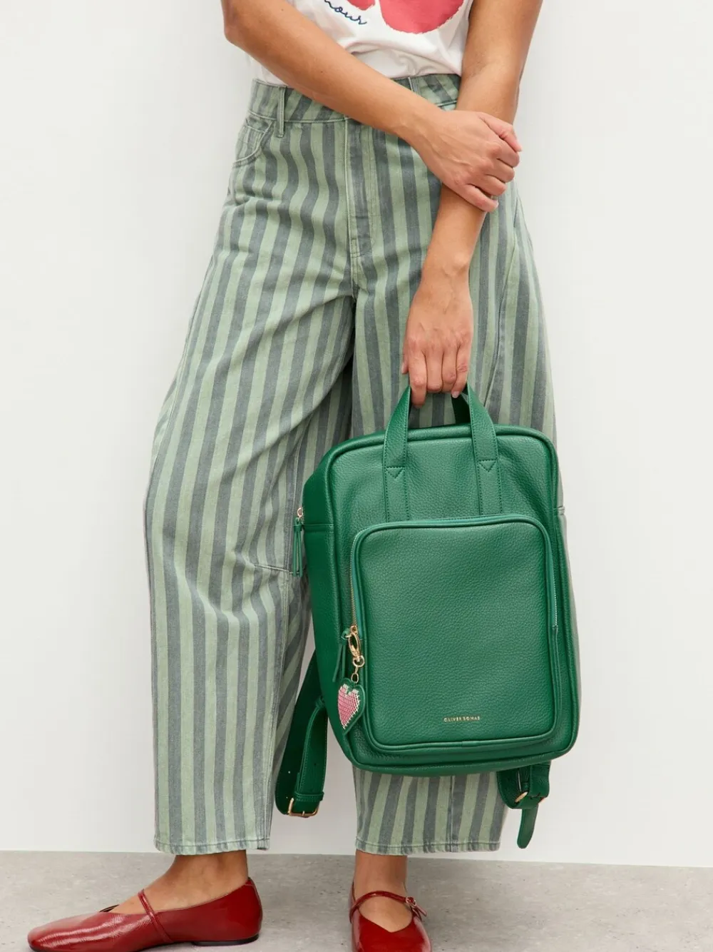 With its dedicated laptop compartment and roomy interior, our deep green backpack has short carry handles and adjustable shoulder straps for a secure and comfortable fit.We ve added two zipped pockets on the front and back alongside the main compartment so you can keep your essentials organised and within easy reach, and finished it off with gold-coloured hardware and a matching green and pink heart charm with a gold embossed Oliver Bonas logo, because we re all about those extra details. Height 5cm dth 2.5cm Depth 1cm Height 5cm Width 2.5cm Depth 1cm Main 100% Polyurethane. Inner Lining 74% Polyester, 26% Elastane.