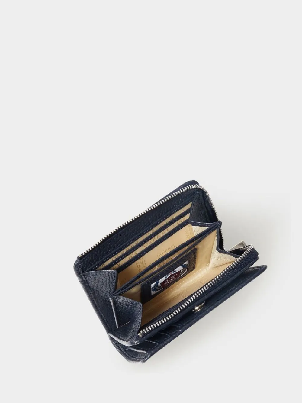 Sleek and slimline on the outside, the Core Medium Leather Zip Matinee Purse has a cleverly constructed fold-over to reveal a well-organised interior with two slip pockets for notes, two compartments, 11 card slots, an ID section, and a zipped coin purse inside. Flip it over, and on the back is a second zipped coin purse, again with a gold metal zip-pull. This purse also features RFID protection to help ensure your card data stays safe. Height 8.5cm Width 12cm Depth 2.5cm 100% Leather.