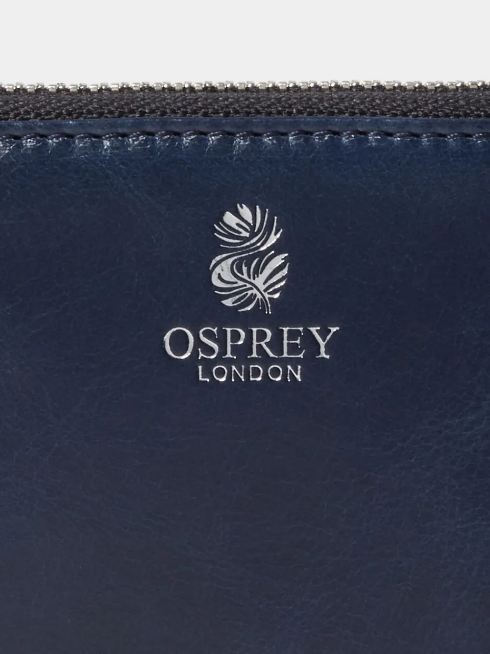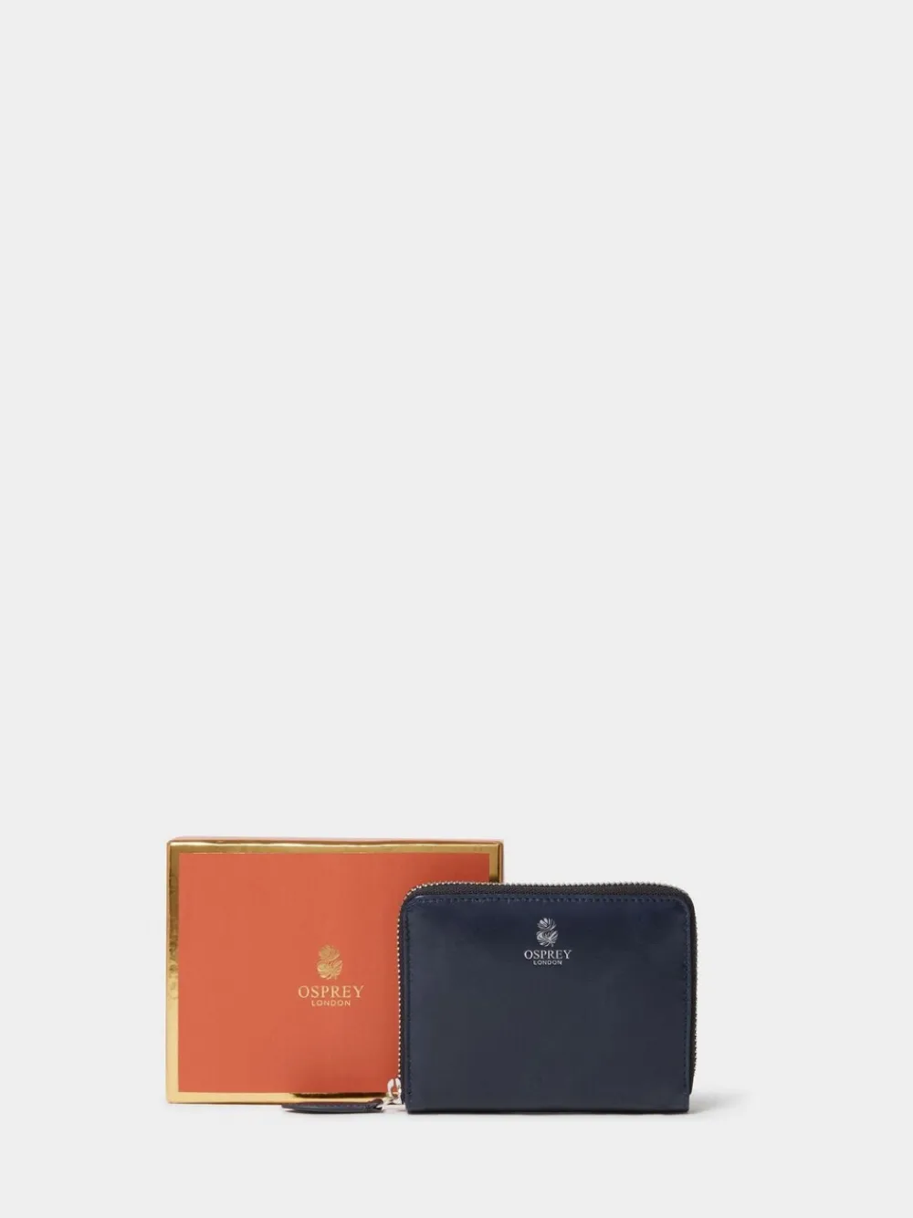 Osprey London The Wentworth Medium Leather Zip Around Purse Blue New