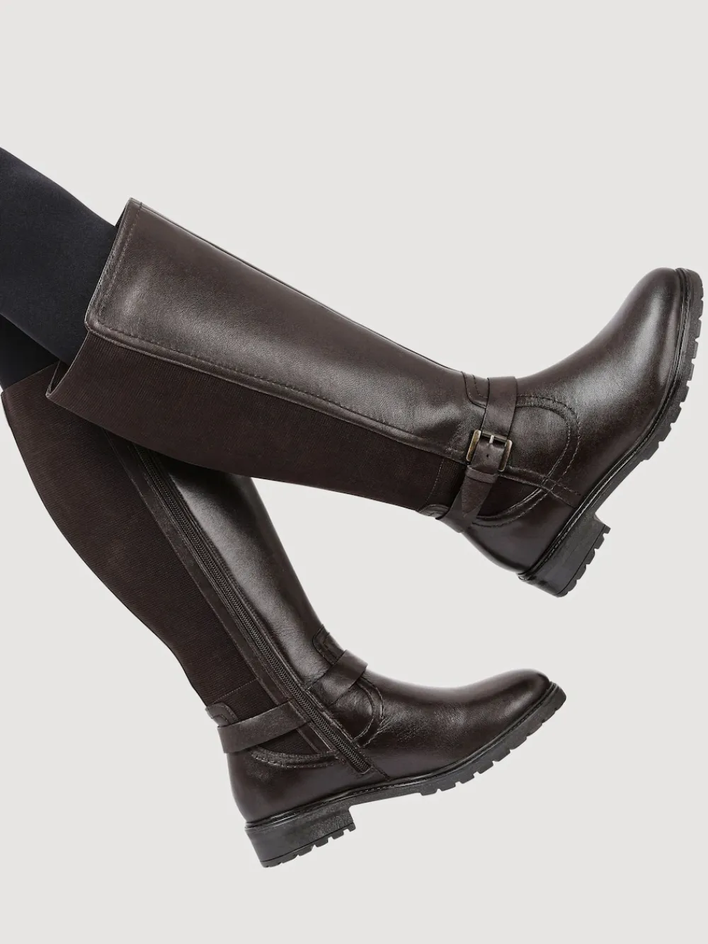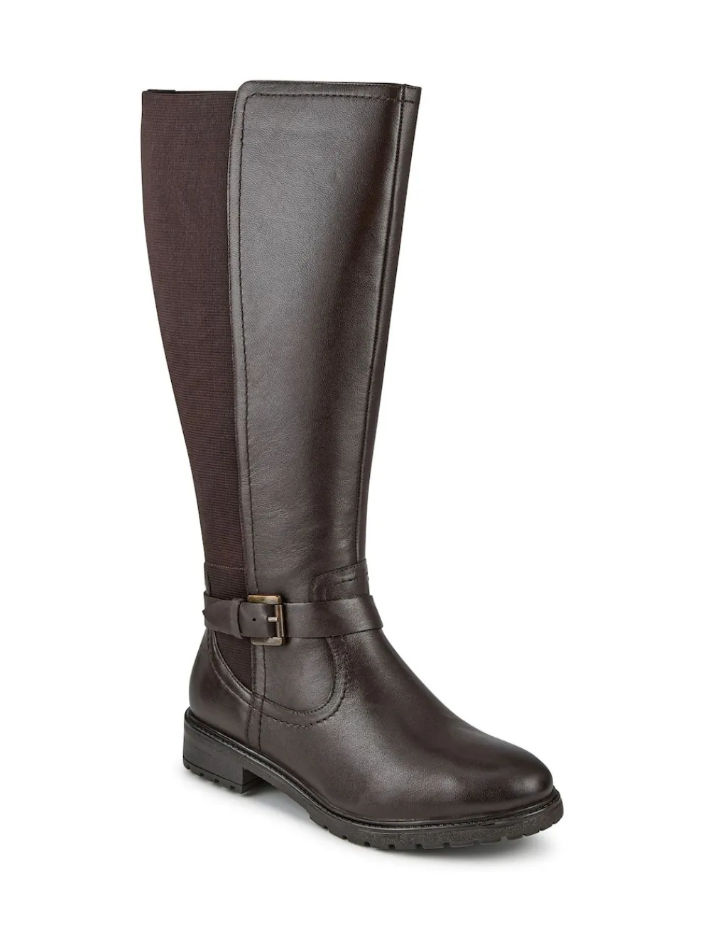 Smart, sleek, and made to move with you, these Wide-Fit Leather Elasticated Long Boots are the perfect blend of comfort and style. Crafted with a soft leather upper and designed in a generous wide fit, they feature a flexible elasticated back panel that gently adapts to your calf for a tailored feel. The zip-up fastening makes slipping them on fuss-free, while the classic silhouette means they’re just as suited to smart daily wear as they are to dressing up for an evening out. Heel height 3cm. Main – 100% Leather. Lining – 100% Textile. Sock – 100% Other fibres.