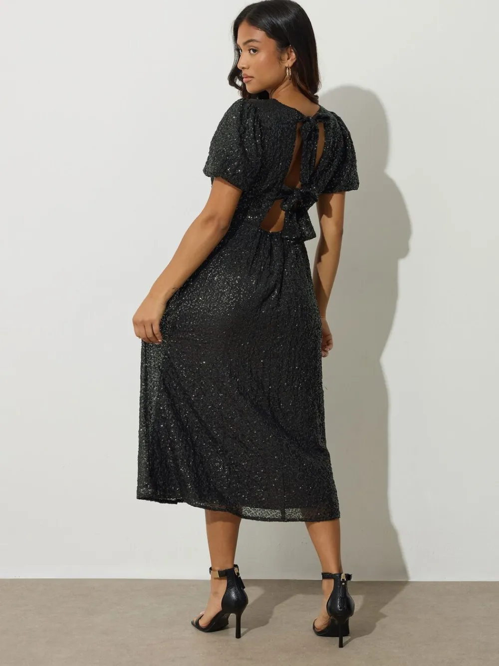 Be the first to review “PixieGirl Petite Black Tie Back Sequin Midi Dress” Cancel reply