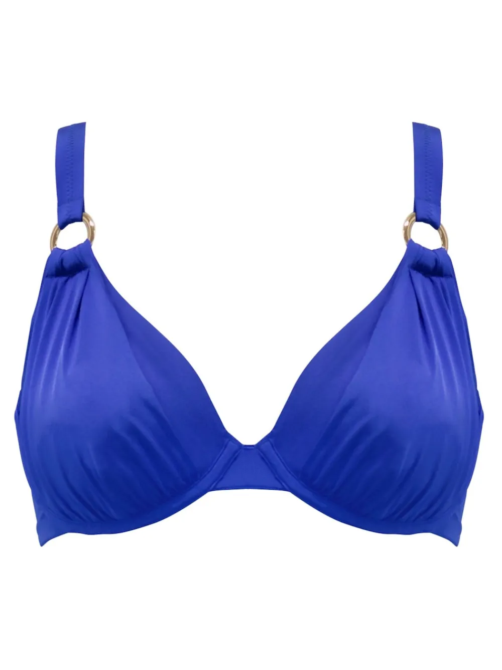 Did someone say ‘pool party’? With the Samoa Blue bikini top, you’ll be the best-dressed babe, whatever your summertime plans. Featuring underwire for lift and a stunning plunge for max cleavage, there are flirty gathered cups and luxe gold hardware to keep your poolside look on-point. Just add the matching Samoa bikini briefs to look cool and coordinated wherever you go. Underwired Non-padded Plunge shape Fully adjustable straps Back clasp fastening Luxury gold hardware details Pretty gathered cups feature DD+ Cup-Sized Bikini Top Cup-sized swimwear Hand wash only. 80% Nylon, 20% Elastane.