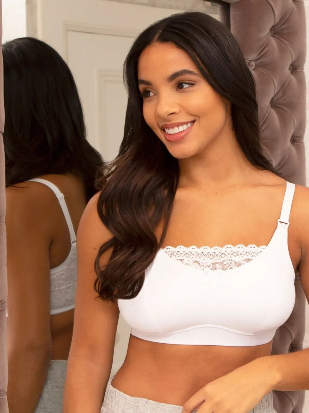 Non wired Lightly padded Fully adjustable straps with a nursing drop-down clip for easy feeding Lace back wings Inner side sling with lace overlay for more coverage and modesty Designed with extra capacity in mind Comfy underband and wide hook and eye fastening– with 4 rows of 3 hook & eyes for rib cage expansion Hand wash only. 85% Nylon, 15% Elastane.
