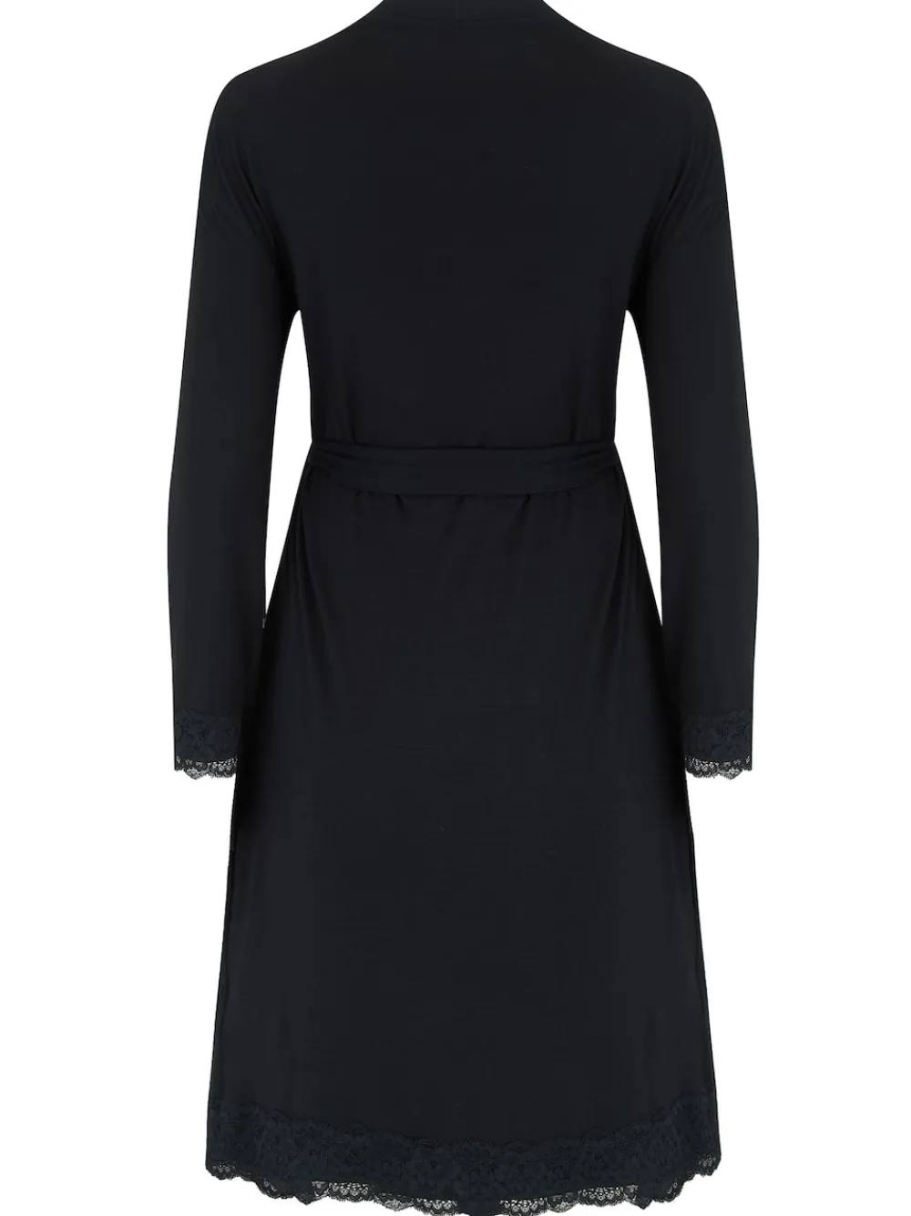 Craving cosiness? Get luxe loungewear all wrapped up with this Sofa Loves Lace jersey robe. Made of a deliciously soft viscose jersey fabric, its delicate lace trim detailing gives it a feminine edge. But how will you style it? The robe looks fabulous with the pyjama tops, trousers and shorts from our Sofa Loves Lace collection, or mix and match with some of our beautiful prints to complete your look. 96% Viscose, 4% Elastane. Warning: Keep away from fire and flames.