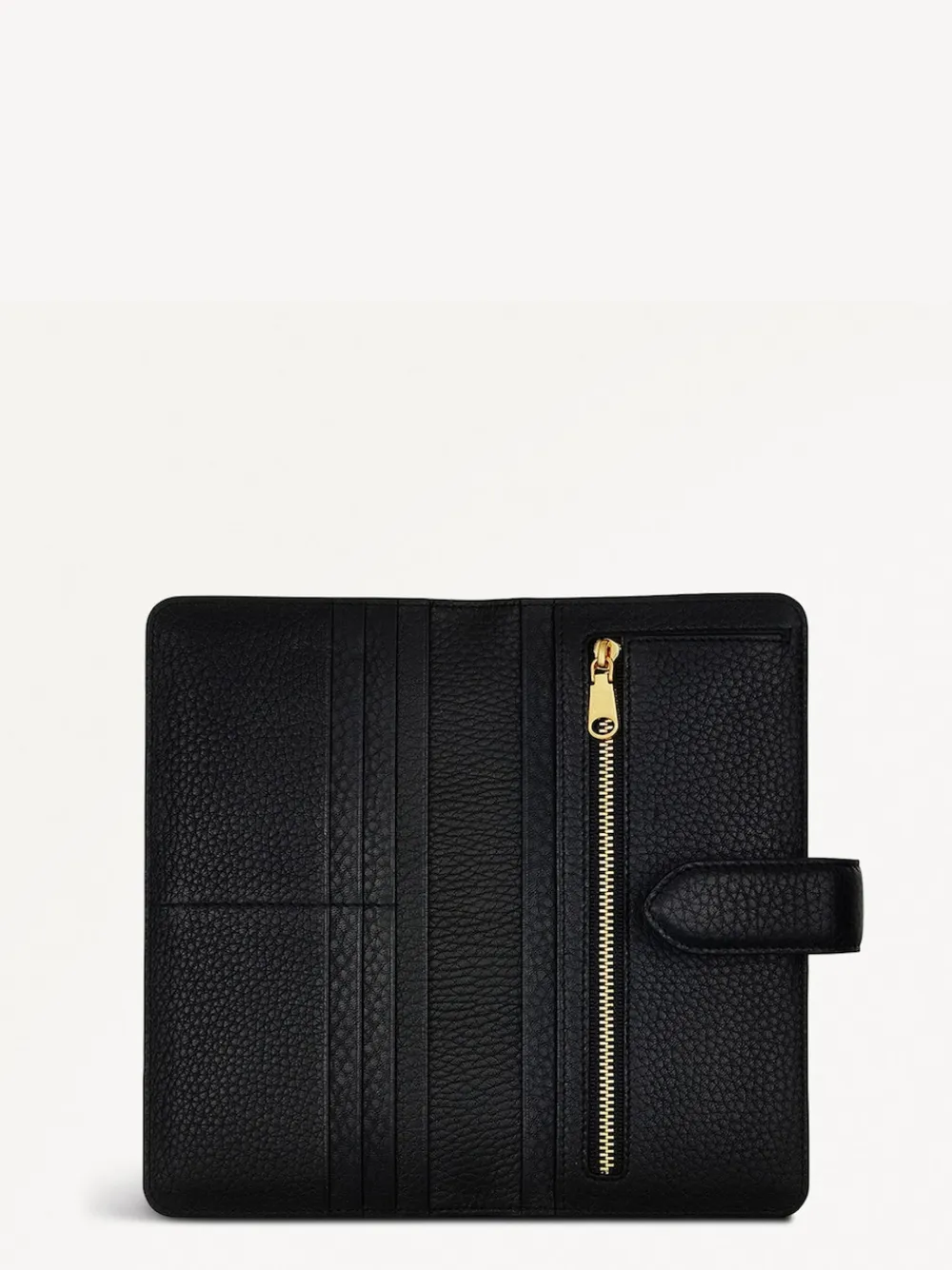 Fitting more than you expect. Our Hillgate large bifold purse opens to reveal endlessly functional interiors. Designed with lots of room for your cards and cash, and a secure press stud that safely seals it all away. Made in pebble grain leather- Press stud tab fastening- Six card slots- Three slip pockets- Zipped pocket- Foil logo- Comes with a dust bag. Height 9cm Width 18cm Depth 2.5cm Main 100% Leather. Lining 100% Polyester.