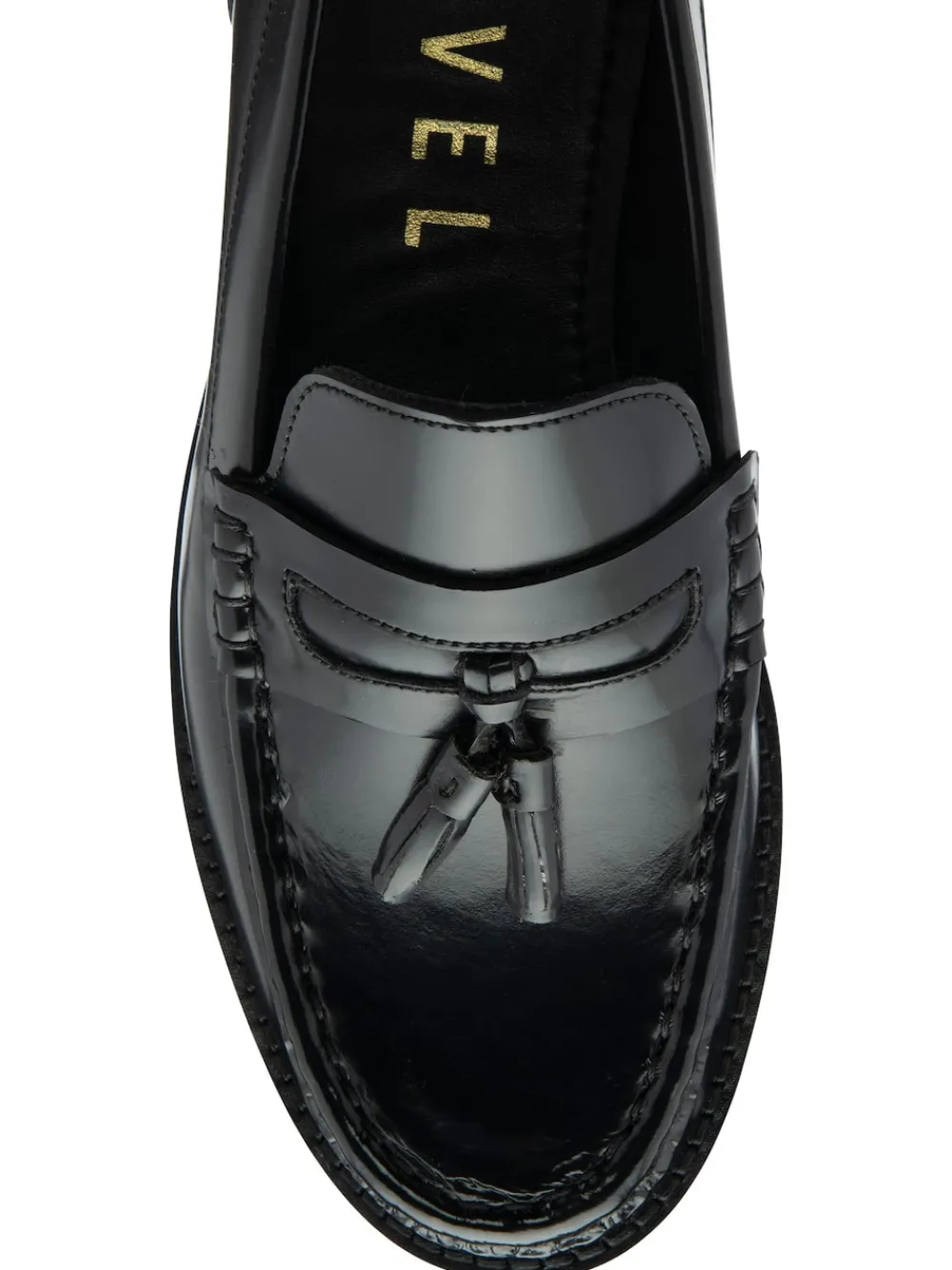 Ravel black high shine leather loafer with a tassel trim. Heel height 2cm. Upper – Leather, Lining and Sock – Leather, Sole – Other Materials.