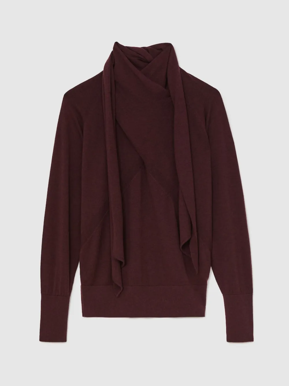 Reiss Alexis Wool Scarf-Tie Draped Jumper Burgundy Hot
