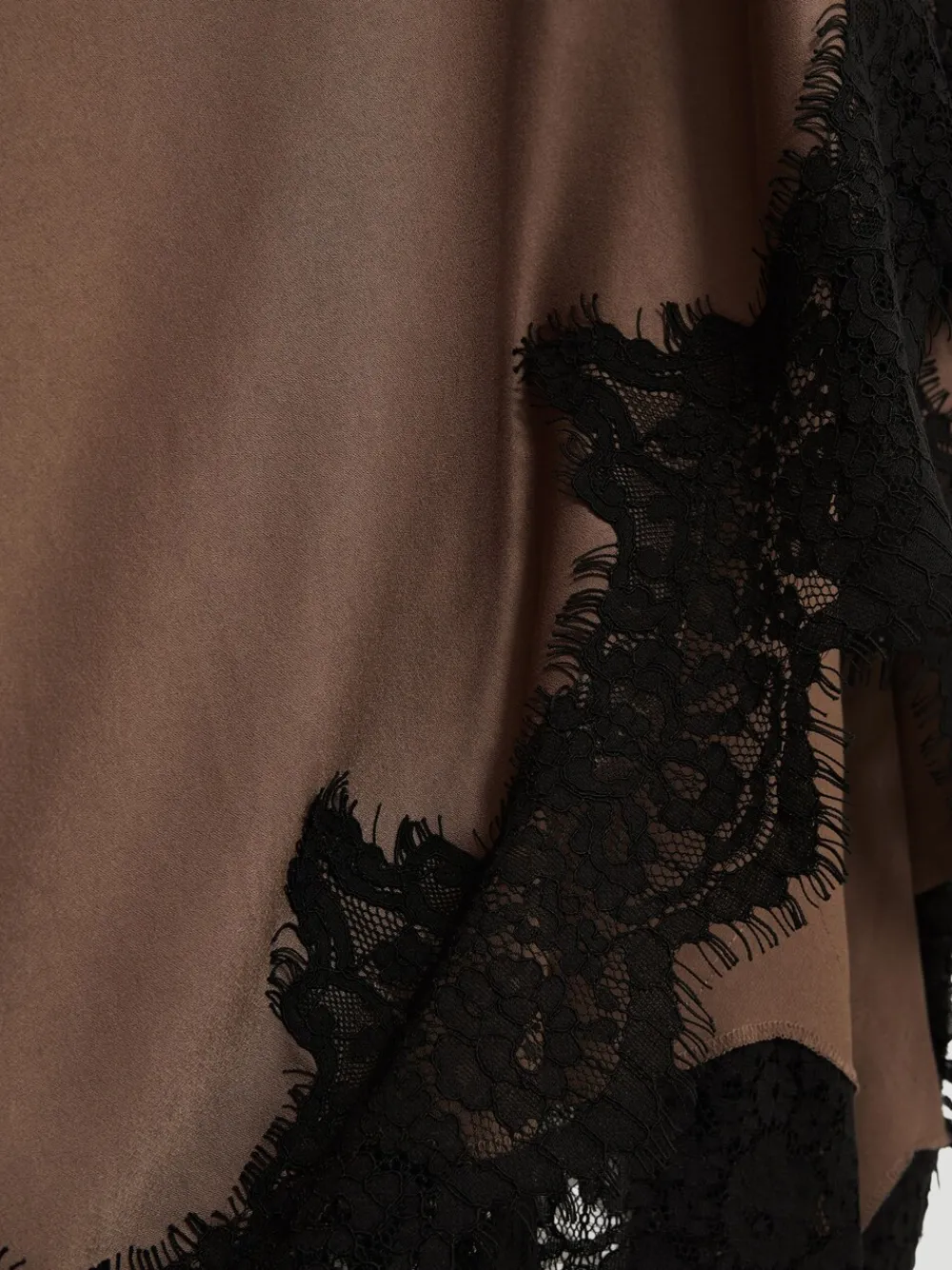 Reiss Anais Satin Drape Lace-Trim Dress Mocha Brown Online
