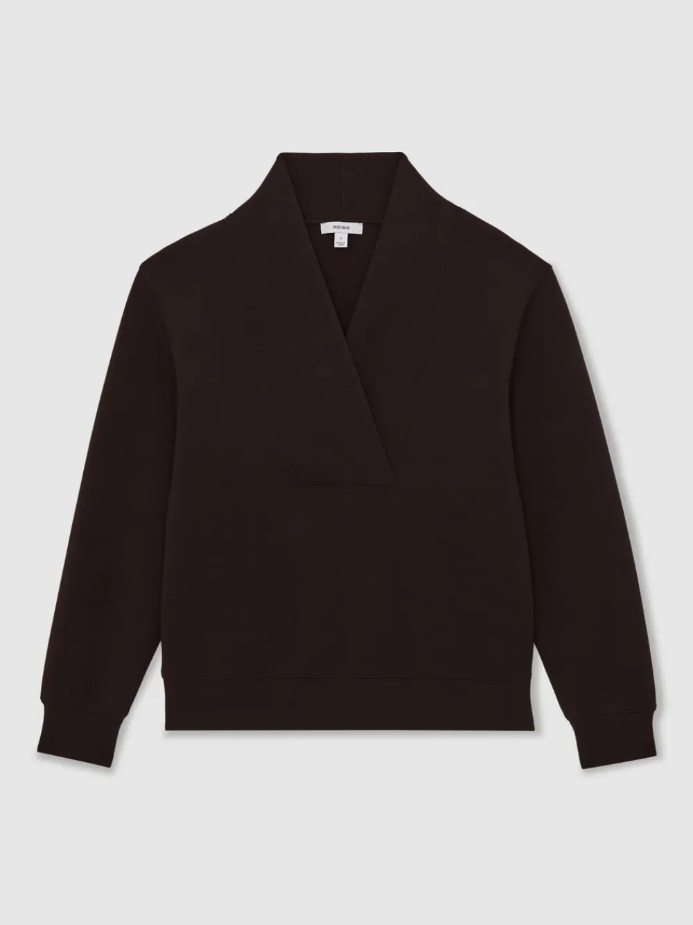 Reiss Annabel Interlock Shawl-Neck Sweatshirt with Modal Dark Chocolate Online