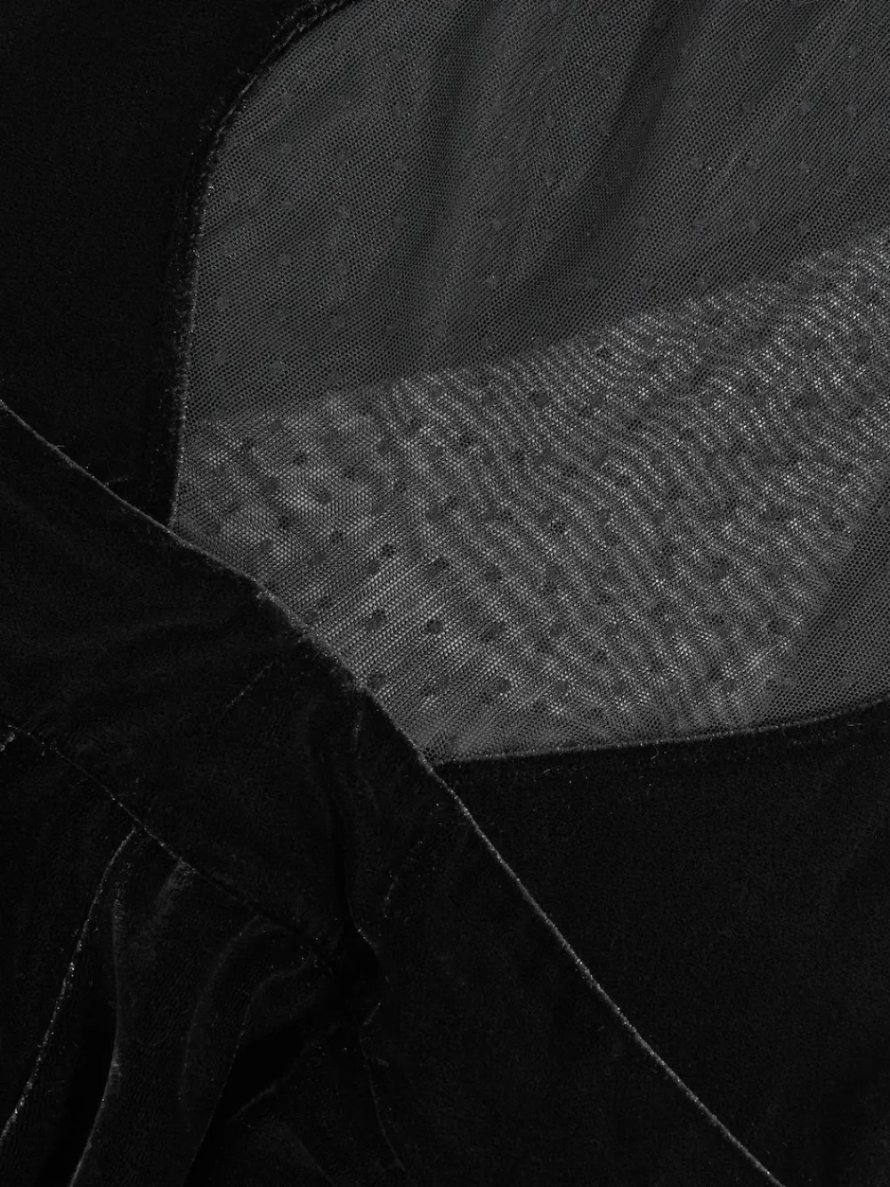 The Karolina jumpsuit is an elegant wide-leg style crafted from plush stretch velvet. Modern cut-outs lend architectural edge, while sheer polka-dot mesh panels offer subtle intrigue. Pleated shoulders create gentle drape across the body.Velvet with stretchAsymmetric neckline Cut-out detailsPolka-dot mesh panelsWide leg Regular inside leg length 32″ / 81cm. Machine washable. 93% Polyester, 7% Elastane.
