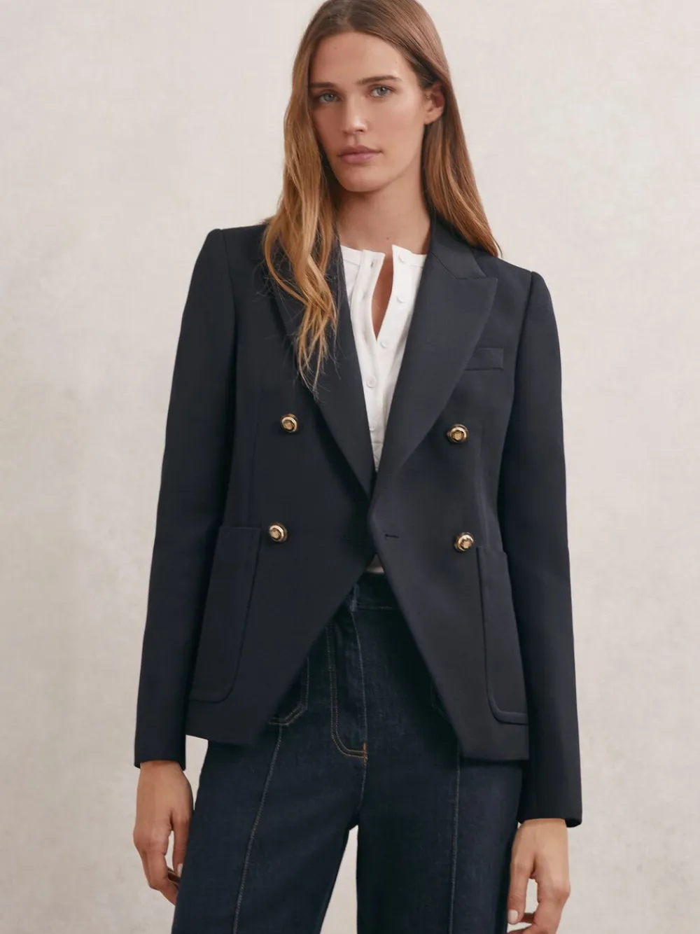 Be the first to review “Reiss Gigi Wool-Blend Double-Breasted Blazer Navy Sale” Cancel reply