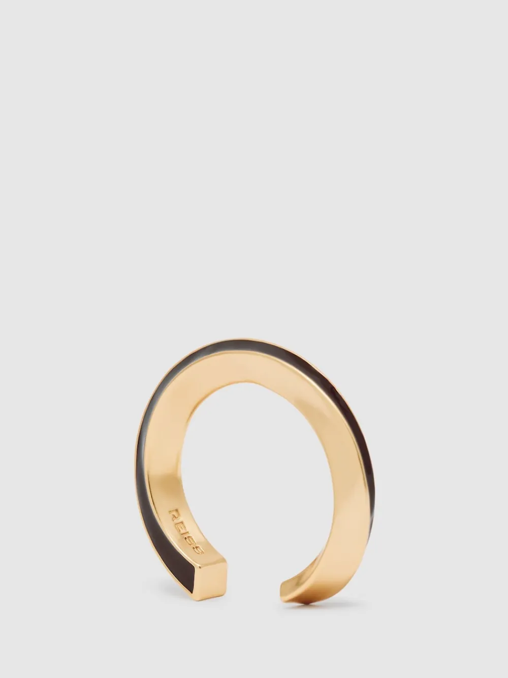 With a sleek twisted design and smooth enamel inlay, the Thea cuff creates a modern, sophisticated statement. Finished in polished gold-tone plating, it effortlessly elevates any outfit. Twisted cuff design Enamel inlay Gold-tone plating Engraved Reiss branding Matching items available Presented in a Reiss-branded gift box To keep your Reiss jewellery looking its best, put it on last after applying perfumes or sprays. Steer clear of water, lotions, and chemicals. Use only a soft cloth for cleaning—skip the chemicals and polishing liquids. Store it in the packaging it came in. And don’t forget: Make it the last thing you put on in the morning and the first thing you take off in the evening. Width 1cm 80% Brass, 20% Other fibres.