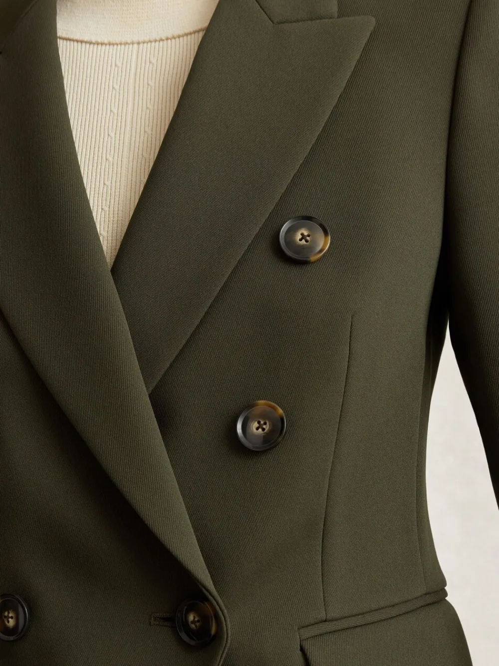 Reiss Green Priya Twill Double-Breasted Blazer Online